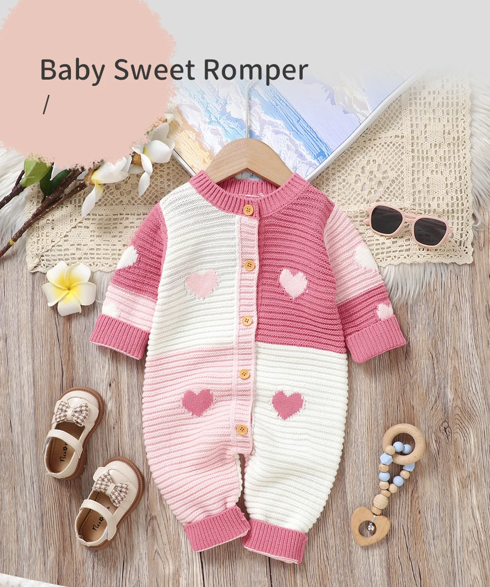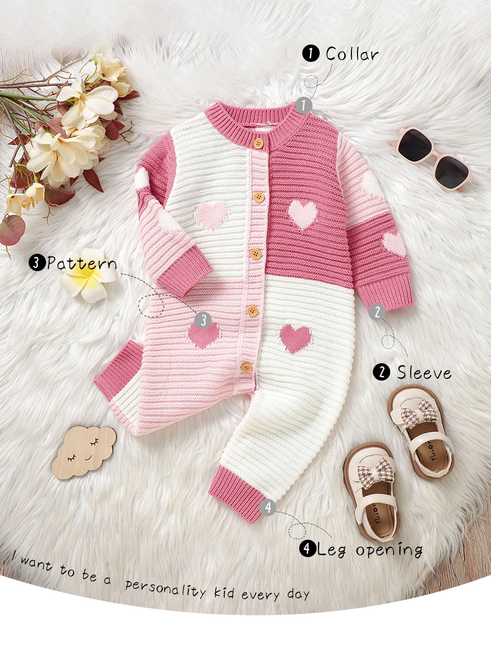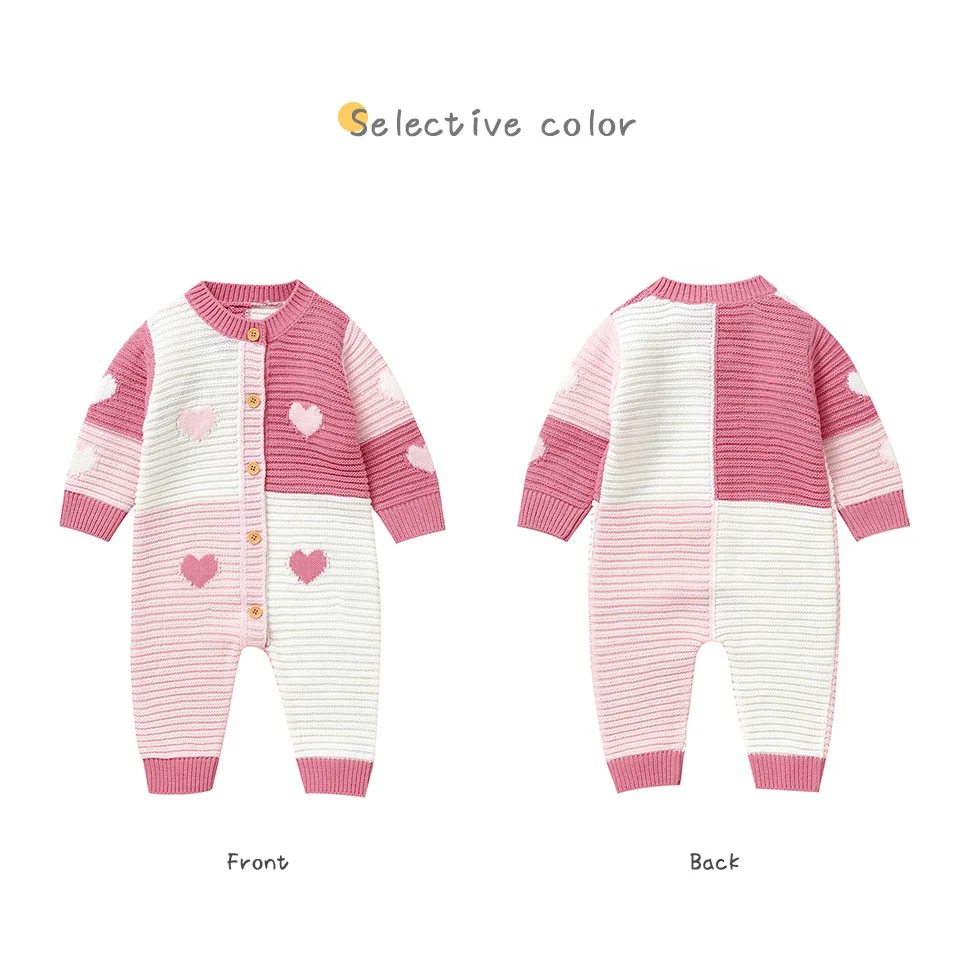 Peleles tejidos para niñas recién nacidas, monos de manga larga con cuello redondo, monos de 0 a 18m, ropa Infantil de una pieza para niños, ropa de Otoño Invierno