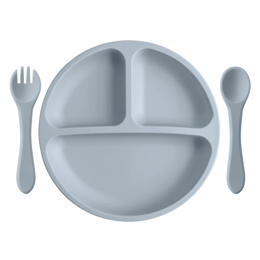 Platos de alimentación de silicona para bebés, plato para niños, cuenco de alimentación con ventosa, tenedor de madera, cuchara, juego de vajilla de entrenamiento para niños pequeños