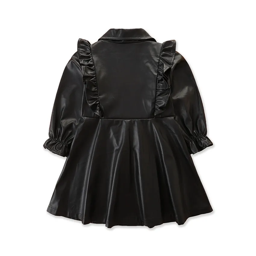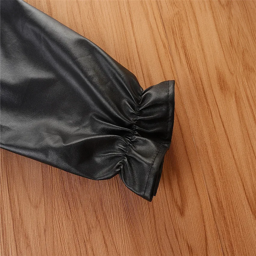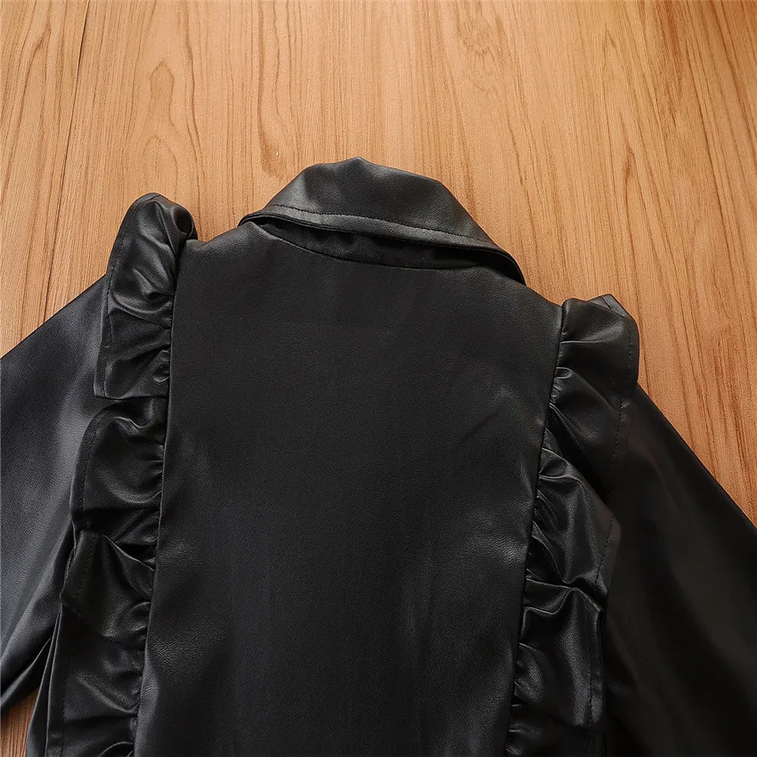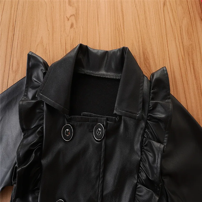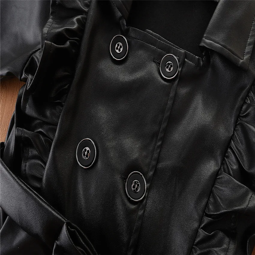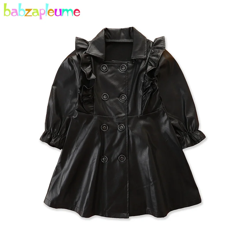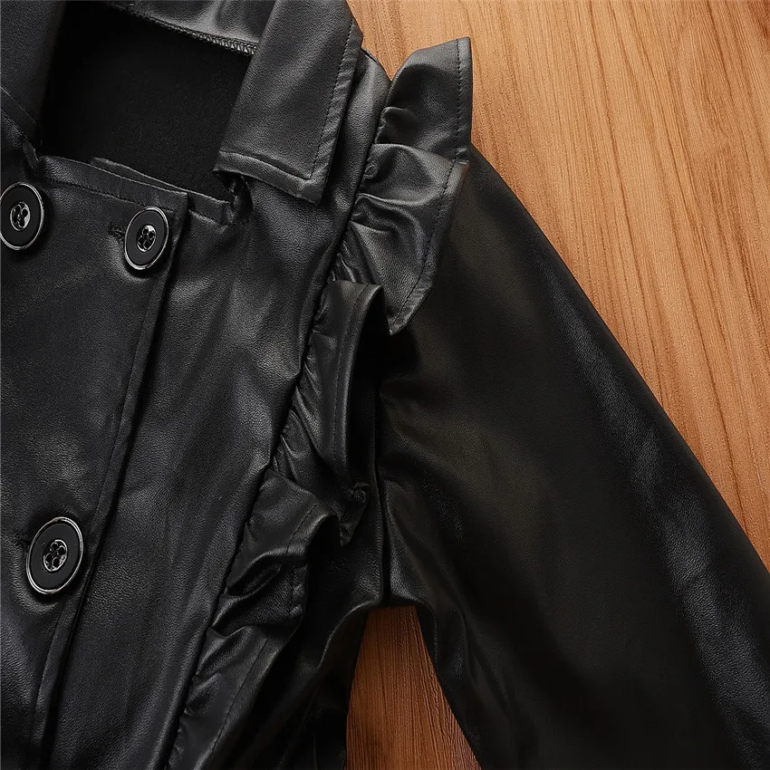 Ropa de abrigo para niña pequeña, abrigo de doble botonadura a la moda, chaqueta de cuero PU negro, Tops para bebé BC057, primavera y otoño, 2024