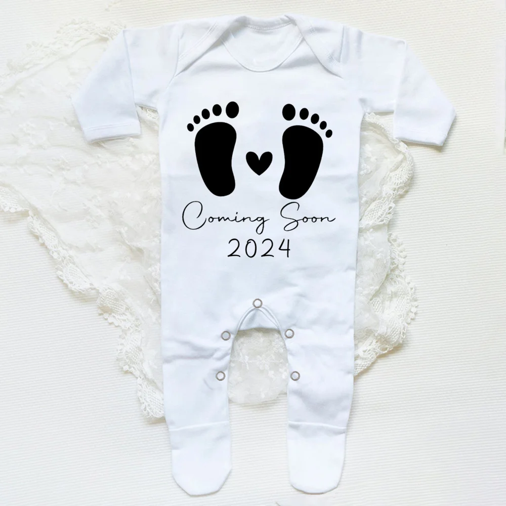 Anuncio de bebé próximamente 2024 Babygrow Sleepsuit Baby Coming Home Outfit Newbron Shower Gift Niños Niñas Sleepsuit Ropa