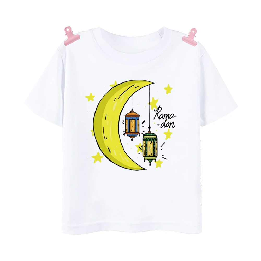 Ropa con estampado de Ramadán feliz para niño y niña, camiseta Eid Mubarak para niño, camisa de manga corta para niño, traje de vacaciones musulmán islámico, Tops