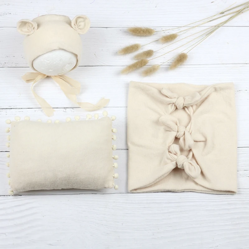 Saco de dormir suave para recién nacido, almohada con nudo de lazo, manta, accesorios de fotografía, accesorios para fotos