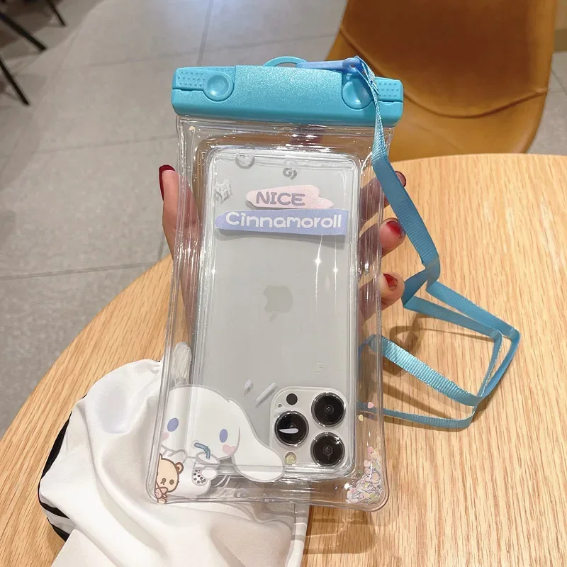 Sanrioed Anime Kuromi Cinnamoroll Melody bolsas de natación funda impermeable para teléfono bolsa a prueba de agua bolsa para teléfono móvil cubierta de Pv regalo