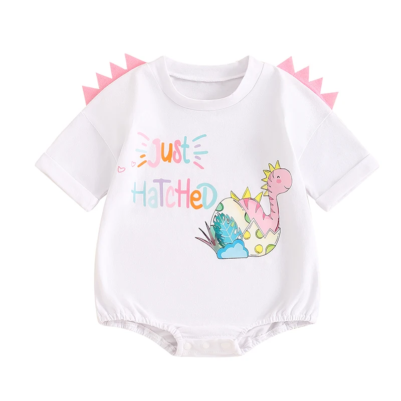 Pelele de verano para bebé, niña, niño, manga corta, cuello redondo, estampado de dinosaurio, mono informal
