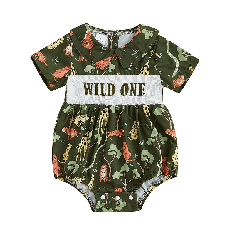 Mamelucos para niñas, ropa de cumpleaños, bordado de letras, estampado de dinosaurios, monos de manga corta con cuello de muñeca