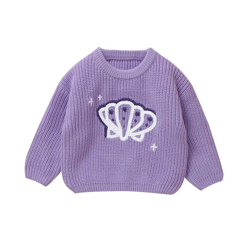 Suéteres de punto para bebés, manga larga, cuello redondo, bordado de animales del océano, Tops de otoño para bebés