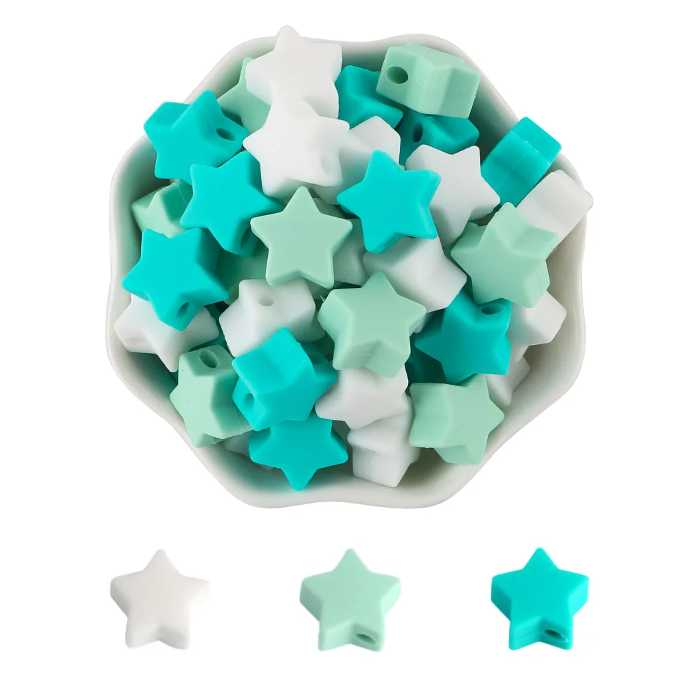 Sunrony 30 piezas Mini Star cuentas de silicona de calidad alimentaria mordedor de silicona DIY chupete collar accesorios masticables juguetes para bebés lactantes