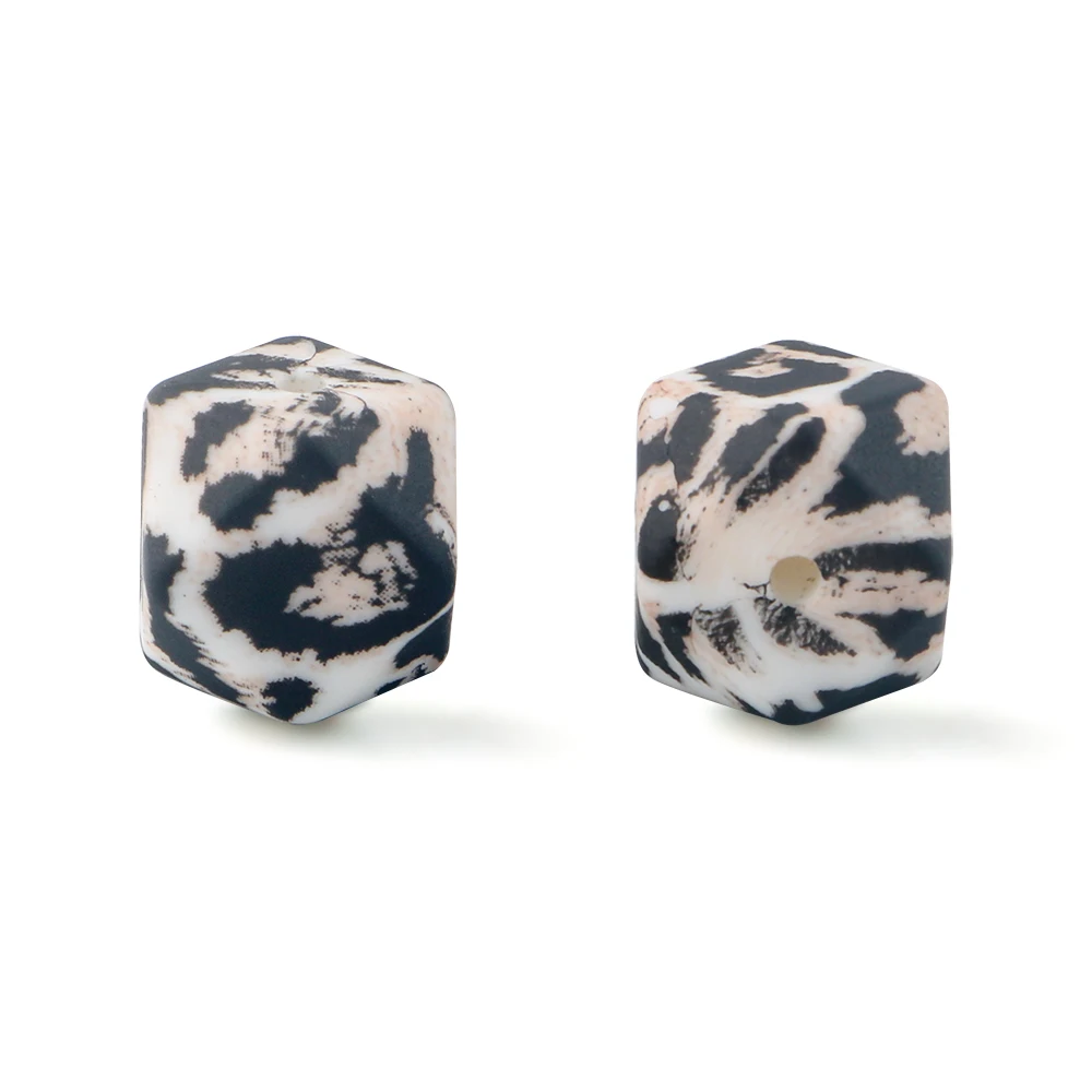 Sunrony 10/14mm nuevas cuentas de silicona hexagonales impresas para la fabricación de joyas DIY collar llavero chupete cadena accesorio