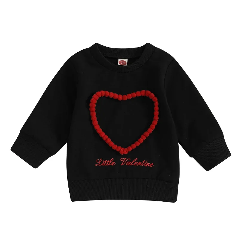 Sudadera del Día de San Valentín para niños pequeños, jersey de manga larga con bordado de letras de corazón y cuello redondo, ropa de calle informal para niños y niñas