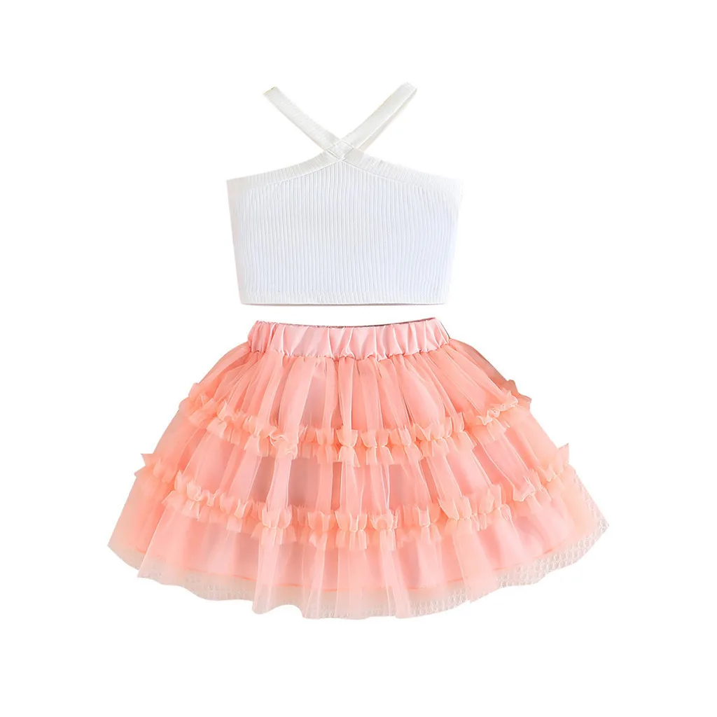 Terno para niño y niña de 4 a 8 años, Top corto y falda de tul, traje de verano, conjunto de ropa infantil
