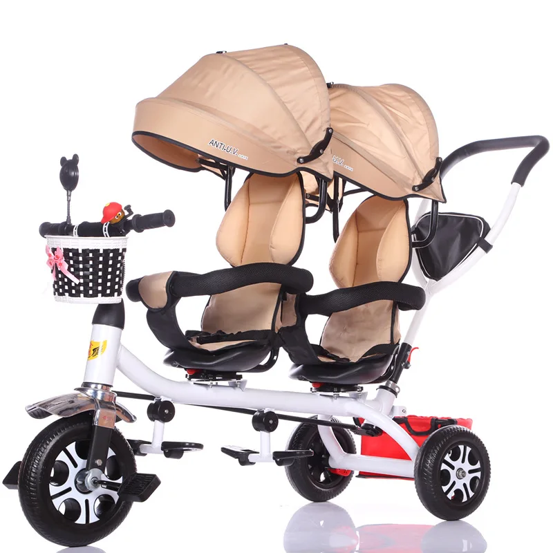 Triciclo para niños, carrito doble para bebé, bicicleta de 3 ruedas
