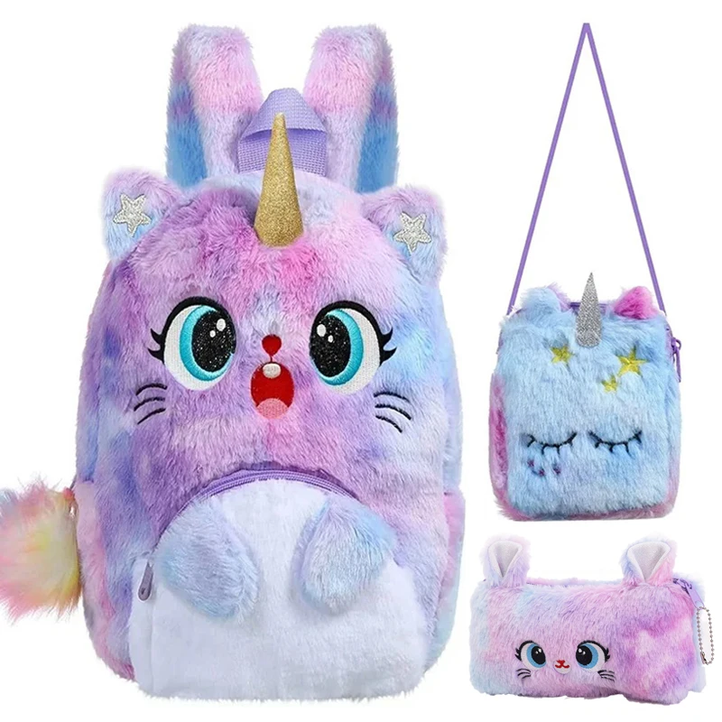 Unicornio gato mochila monedero conjunto Kawaii lindo colorido unicornio gato gatito bolso de hombro conjunto de regalo para niñas pequeñas