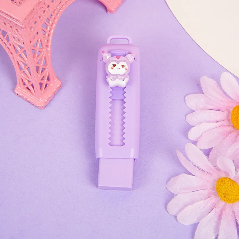 Venta al por mayor Sanrio Anime Push-pull borrador Hello Kitty rollo de canela estudiante Kawaii borrador retráctil dibujo papelería creativa