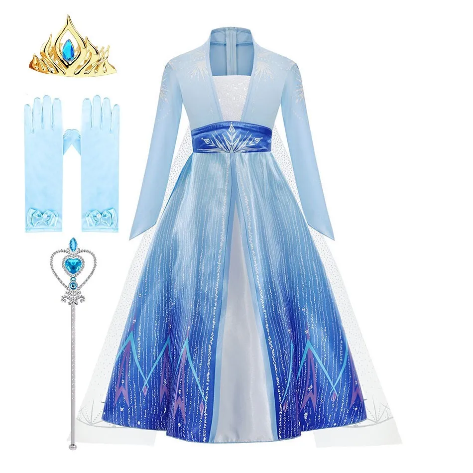 Nombre del vestido:Vestido Elsa para niños, disfraz de Carnaval, fantasía, reina de la nieve para niños, ropa de desfile, disfraz de actuación de Rapunzel de 3 a 10 años
