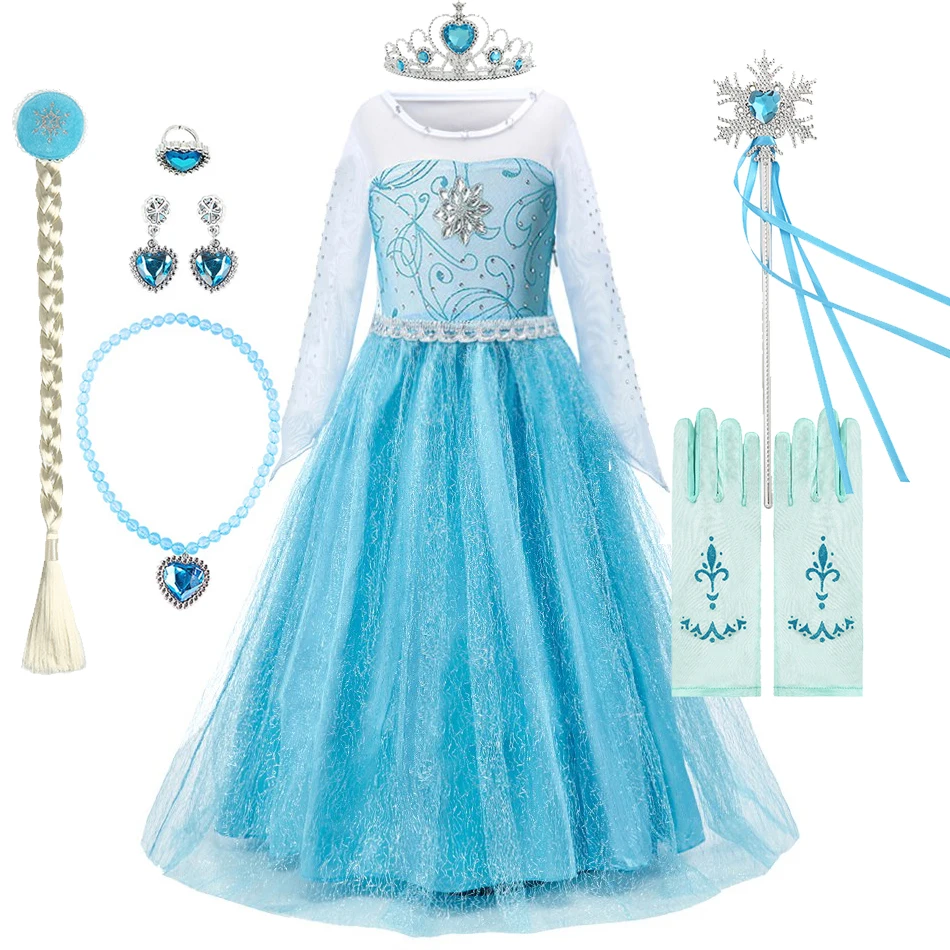 Nombre del vestido: 3 4 6 7 8 9 10 años vestido de princesa para niños vestido de Cosplay de Elsa para niños disfraz de verano para niñas pequeñas ropa de fiesta de Halloween