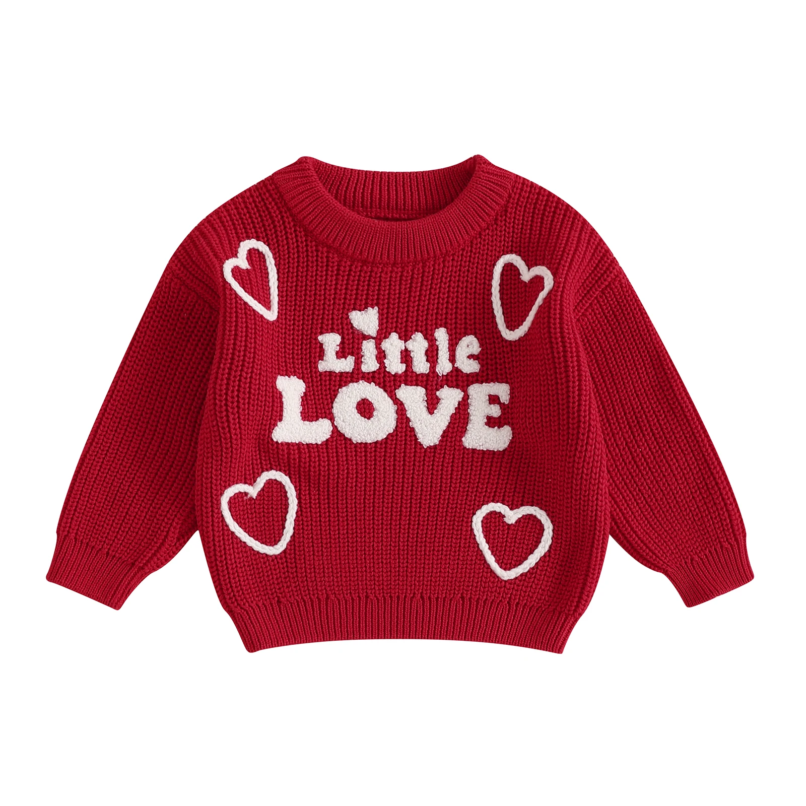 Suéteres de otoño para niñas pequeñas, jerséis de manga larga con cuello redondo y patrón de letras de corazón de amor a la moda