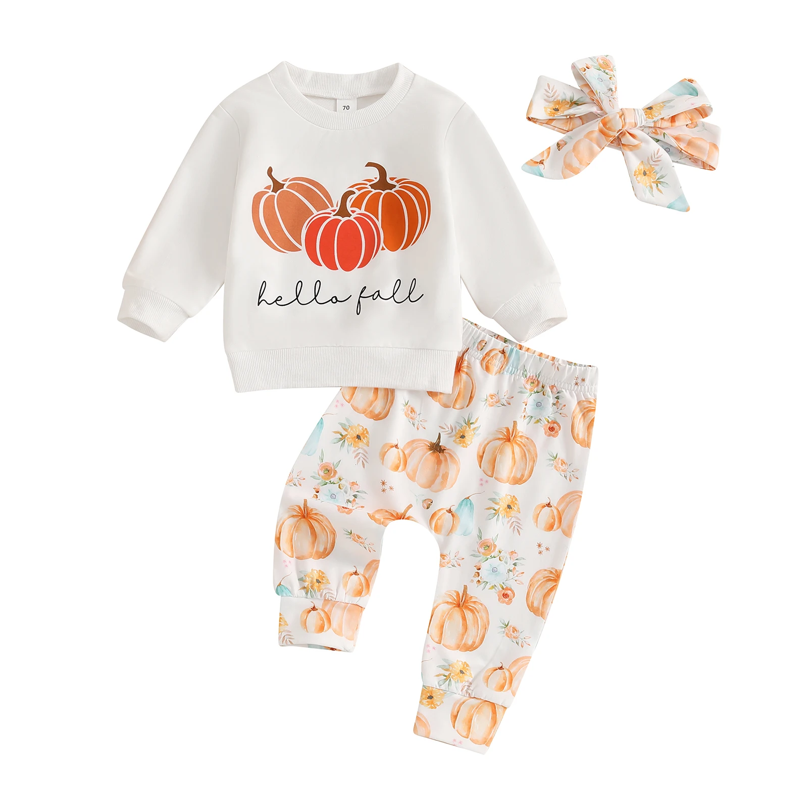 Conjunto de sudadera de calabaza de manga larga, pantalones y Diadema, conjunto de ropa para niños pequeños, conjuntos de Otoño de 3 piezas para niña