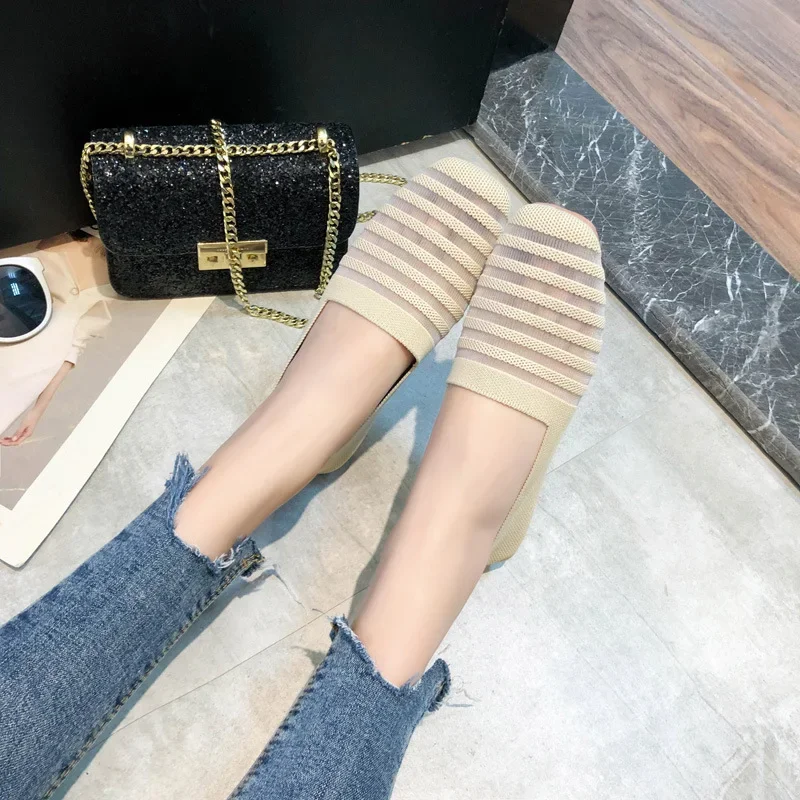 Zapatos planos de primavera y otoño, zapatos planos de ocio a la moda para mujer, zapatos de Boutique sin cordones cómodos elásticos con punta cuadrada