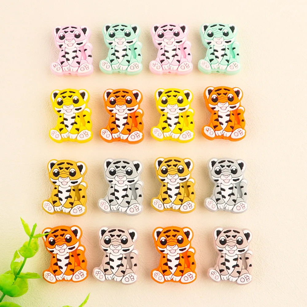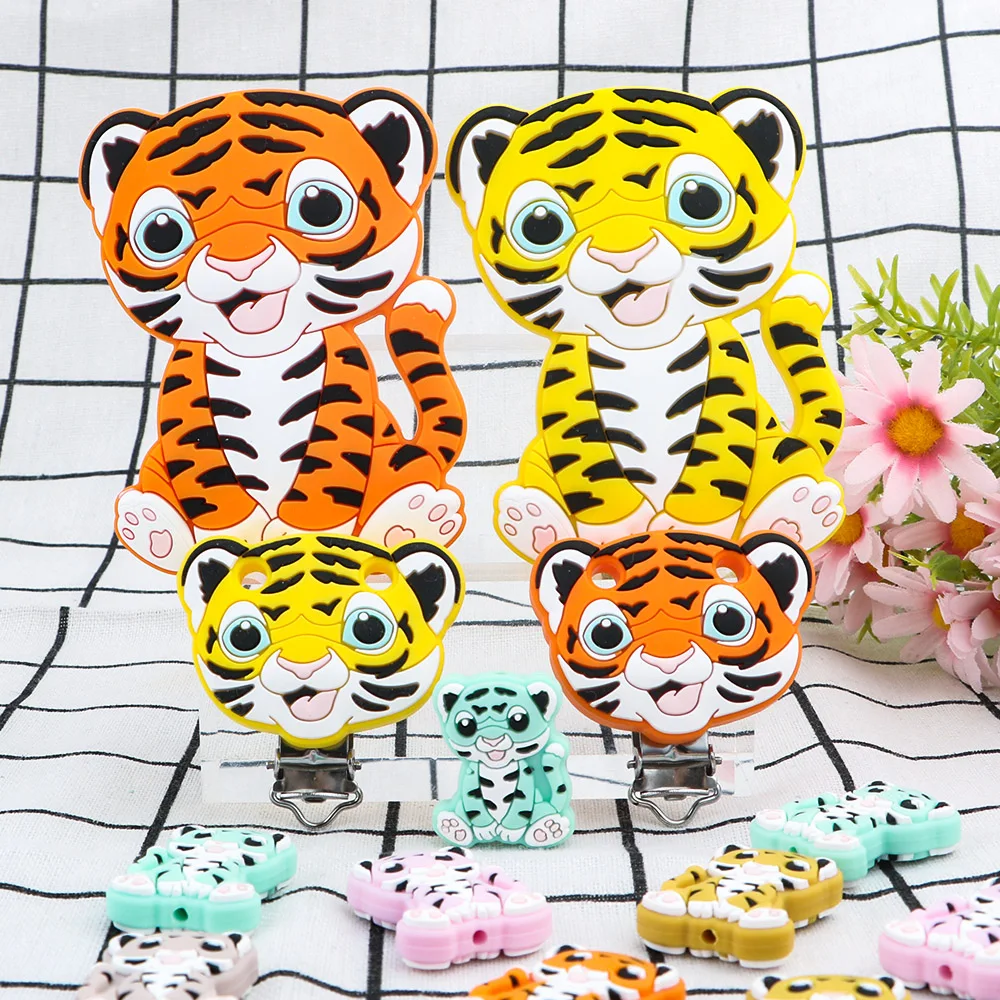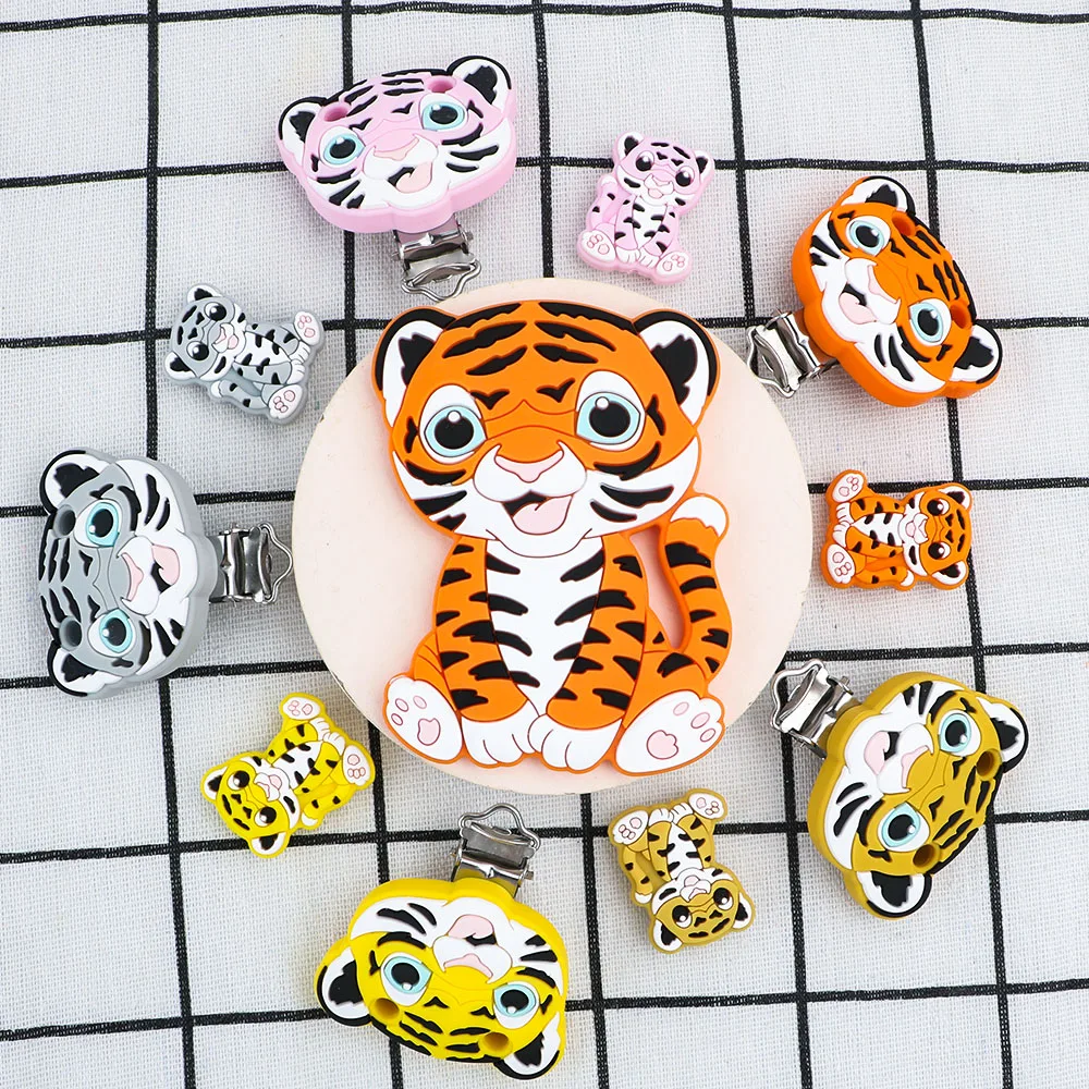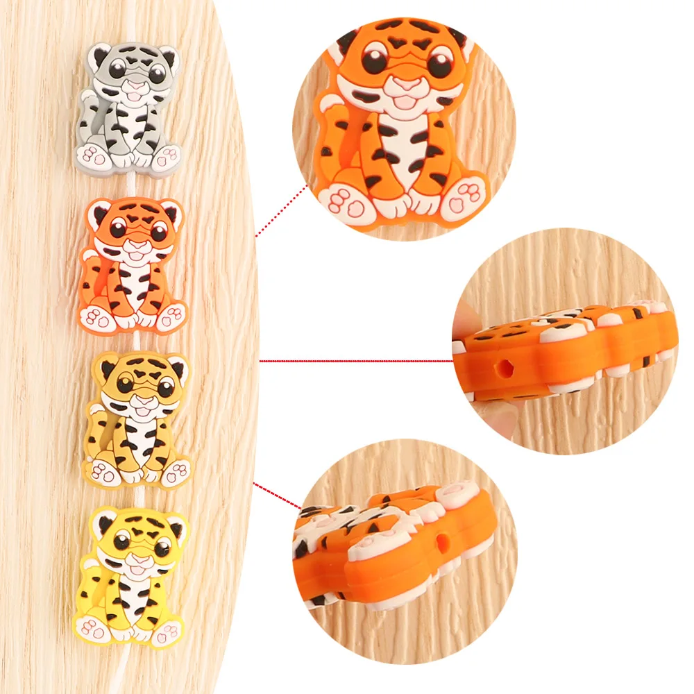 1-10 Uds. Nuevas cuentas de silicona de tigre, mordedor, Clips para chupete, cuentas de calidad alimentaria para fabricación de joyas, accesorios de cadena de chupete DIY a granel