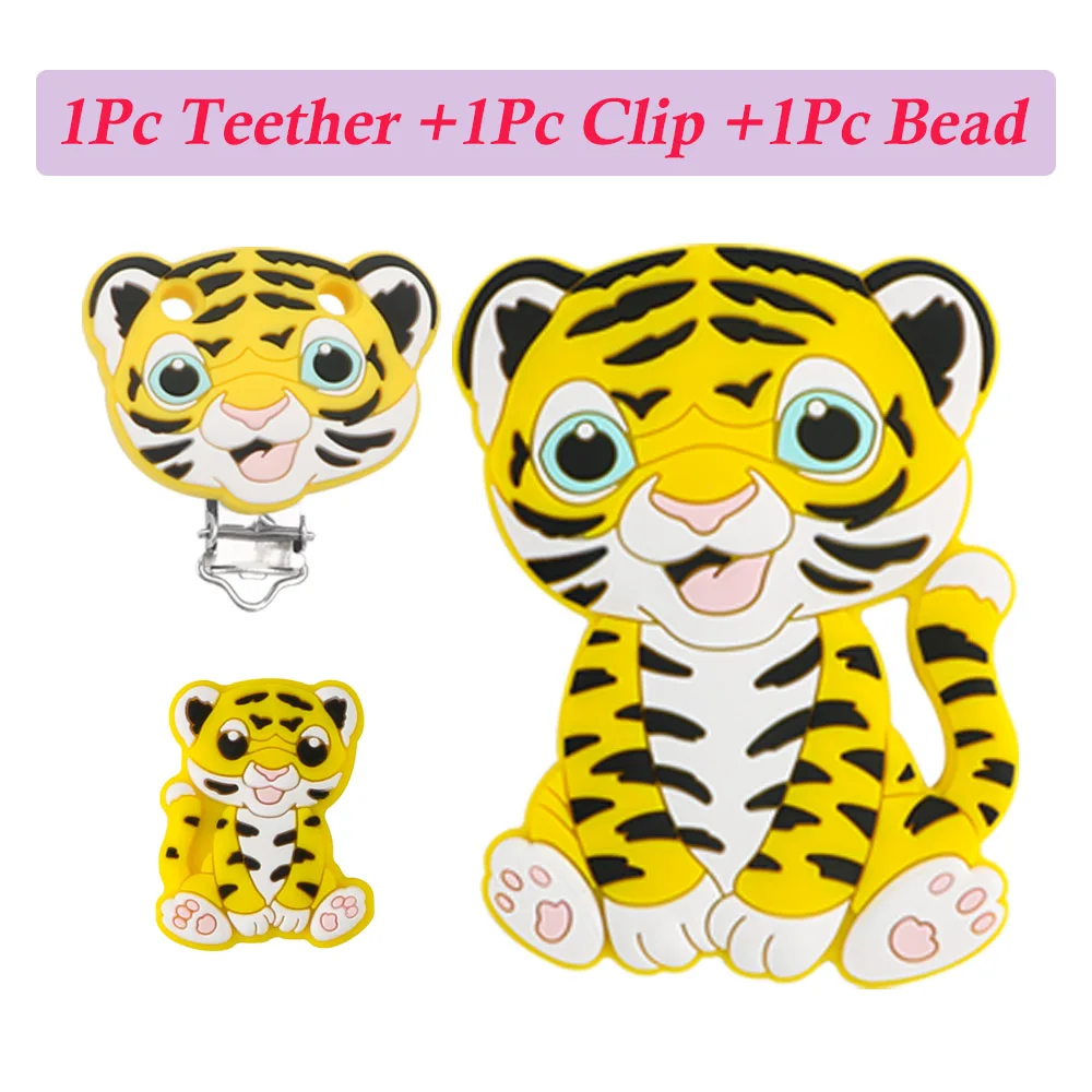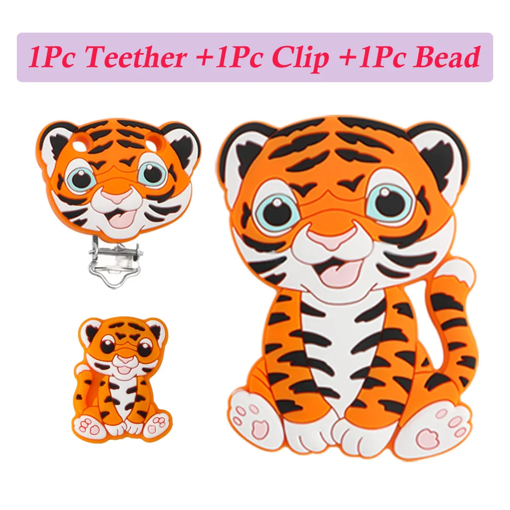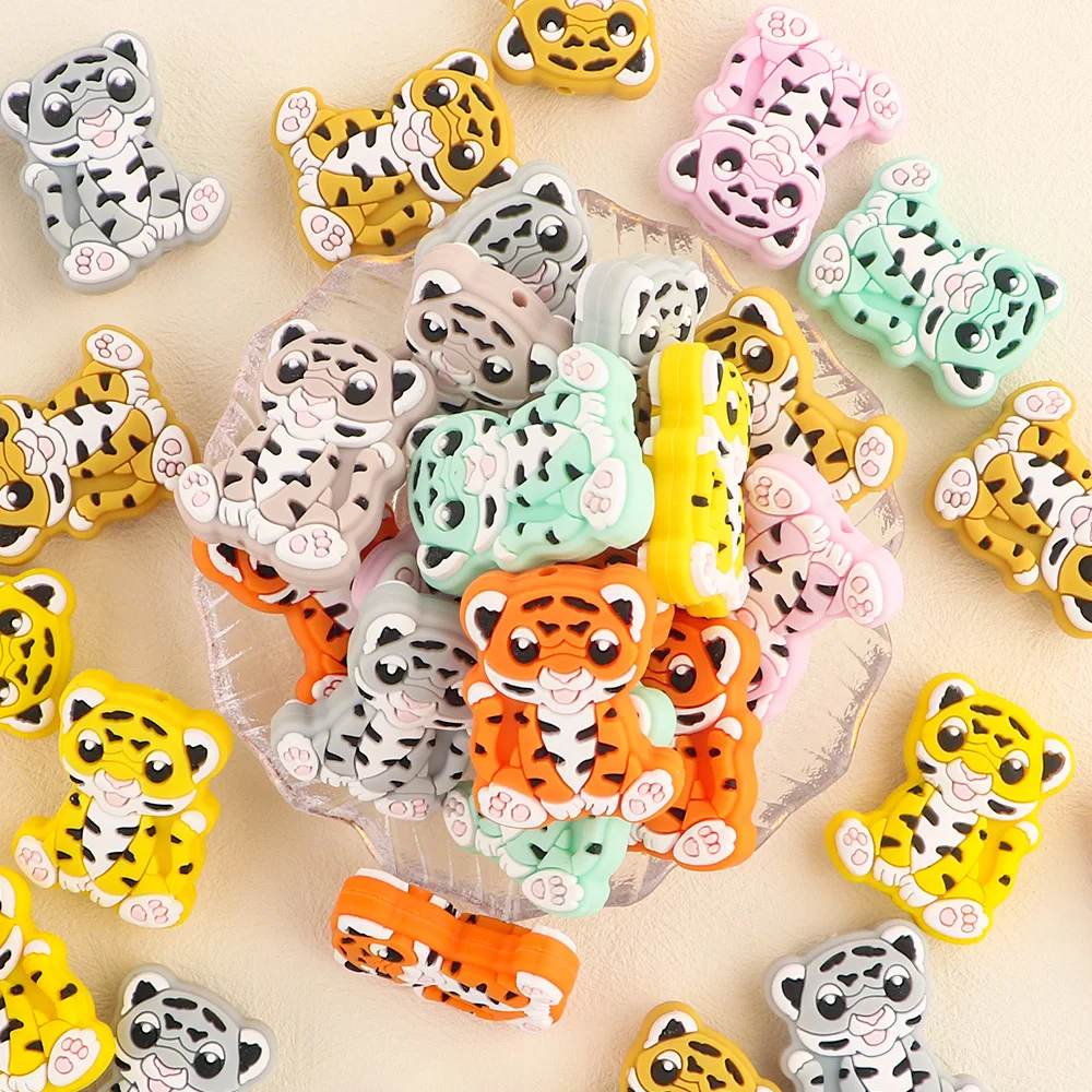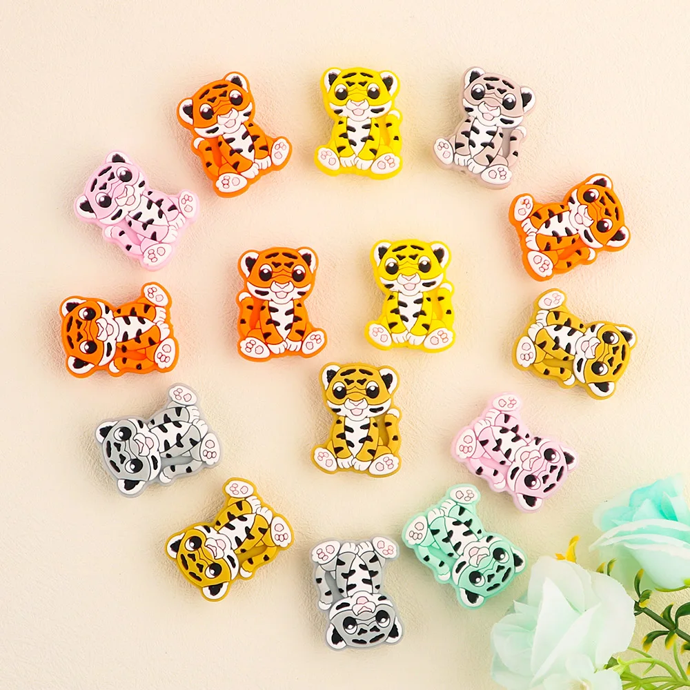 1-10 Uds. Nuevas cuentas de silicona de tigre, mordedor, Clips para chupete, cuentas de calidad alimentaria para fabricación de joyas, accesorios de cadena de chupete DIY a granel