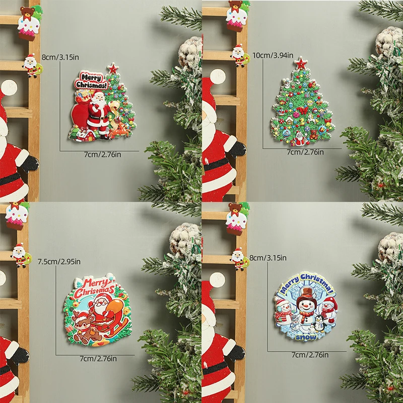 1/2/4 Uds. Decoraciones navideñas-pegatinas para refrigerador-pegatinas magnéticas de resina-pegatinas magnéticas creativas para puerta-percha de puerta