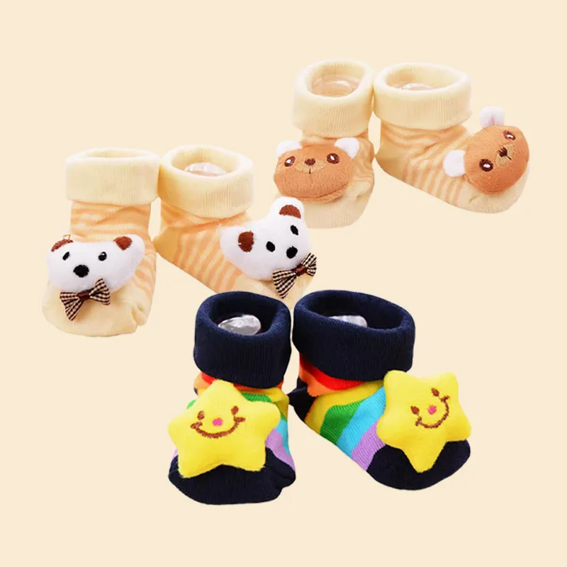 Comprar 1/3 pares de calcetines de suelo para recién nacidos, calcetines antideslizantes de algodón para niños pequeños, calcetines suaves con dibujos de animales, calcetines para primeros pasos para bebés y niñas, nuevos