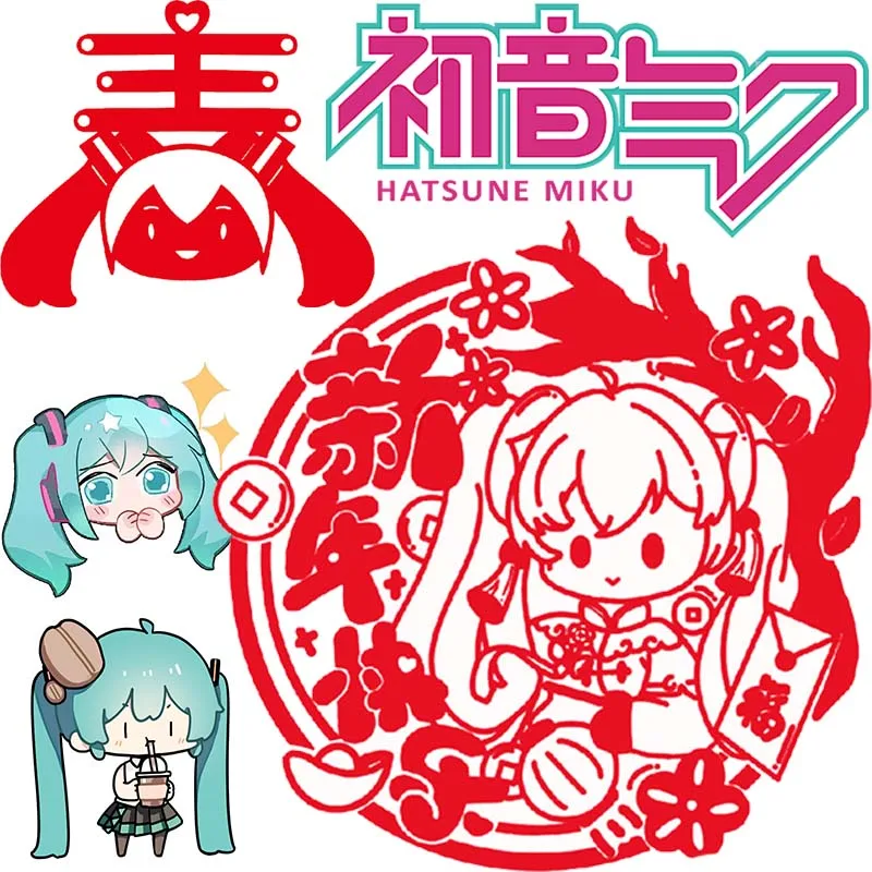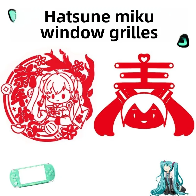 1/5/10 Uds. Hatsune Miku papel cortado Festival de Primavera Fu pegatinas estáticas pasta de ventana pegatina de pared del hogar decoración de Año Nuevo regalos nuevos