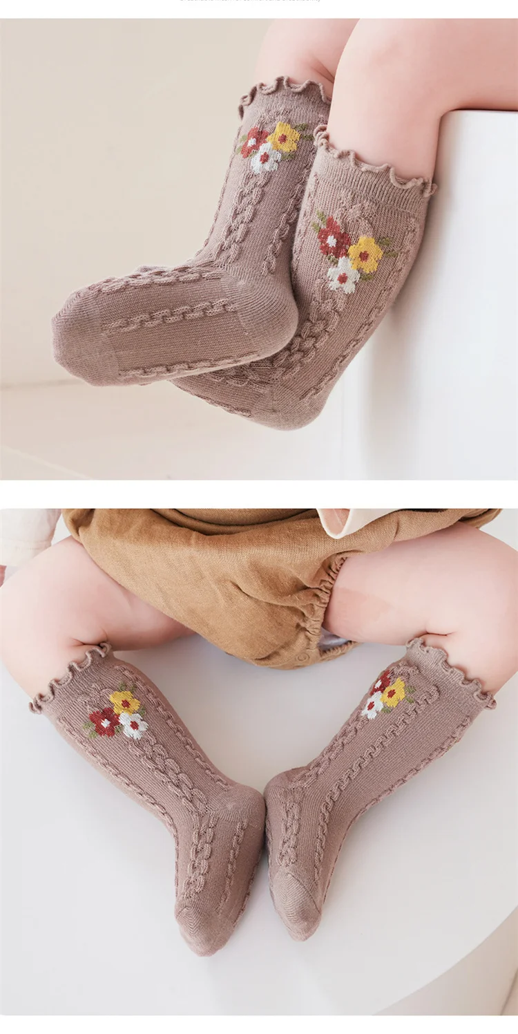 Comprar 1/5 pares de calcetines para niñas, Otoño Invierno, algodón, bebé, niño pequeño, estampado de volantes, calcetín para niños, moda de princesa, calcetín elegante para estudiantes