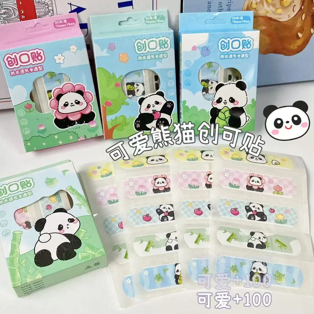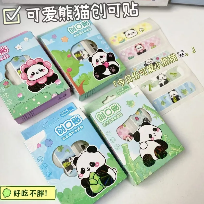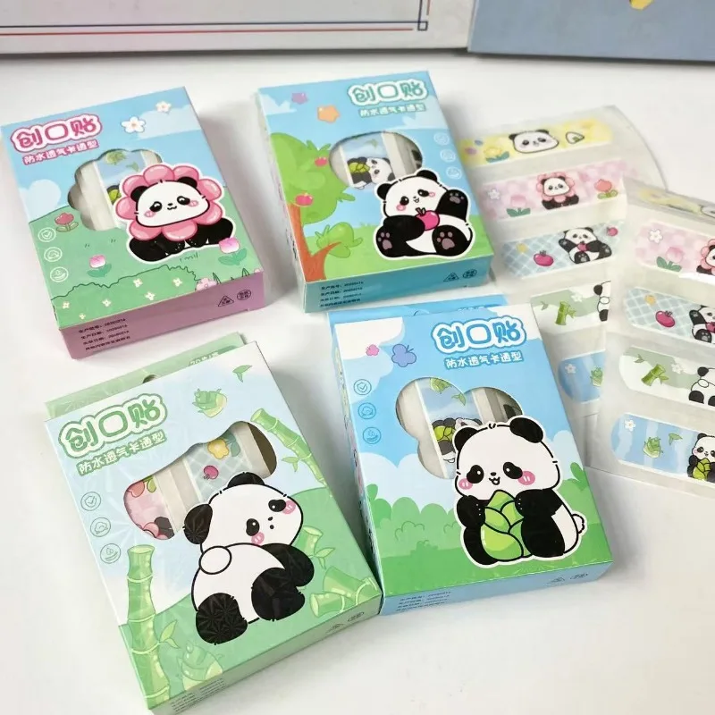 Comprar 1 caja de pegatinas de dibujos animados de Panda, impermeables y transpirables, hemostasia para heridas, tirita antidesgaste para pies, alto valor