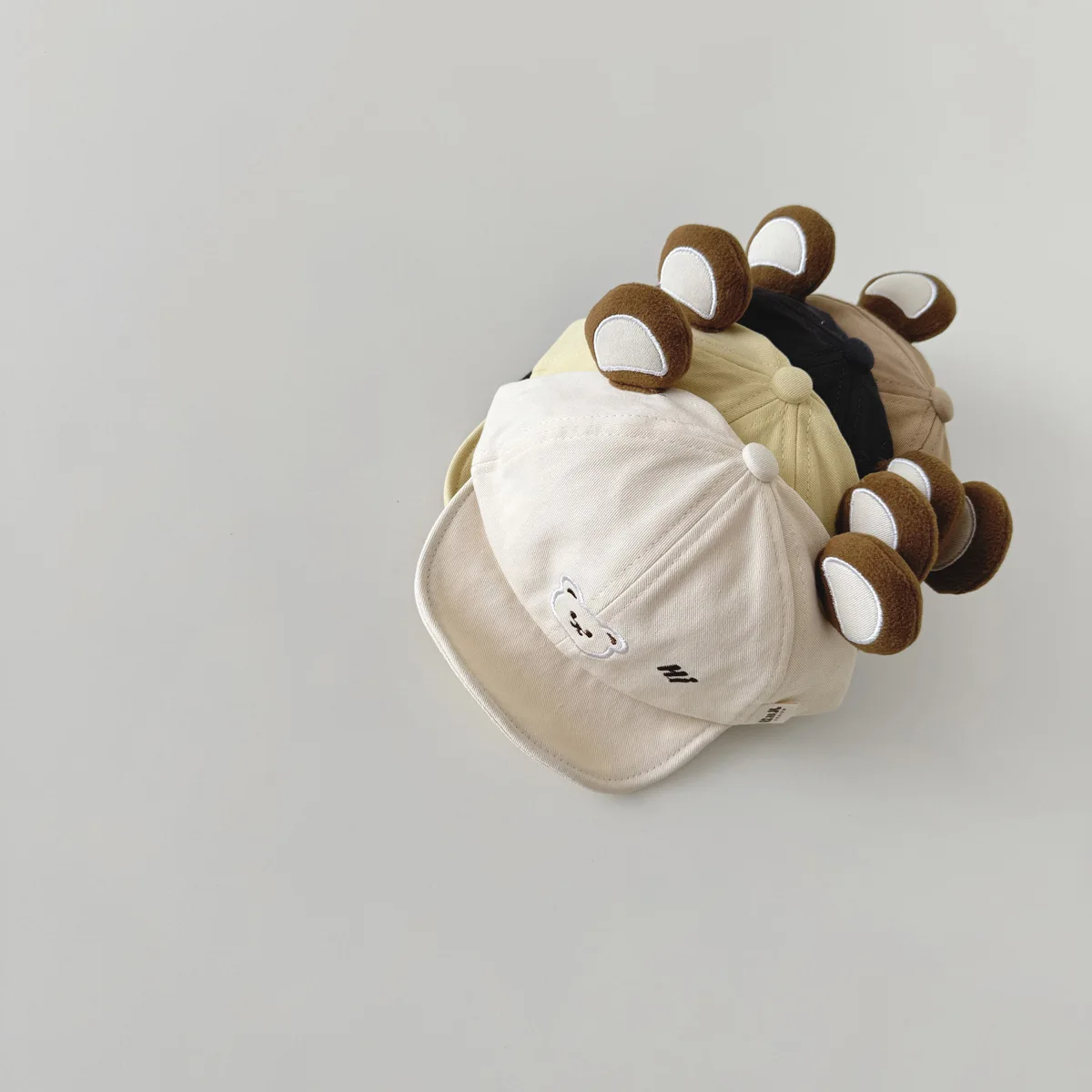 1 gorra de béisbol deportiva de moda para niños y niñas, gorra con visera de oso de dibujos animados para niños pequeños, sombrero parasol de viaje para primavera y verano