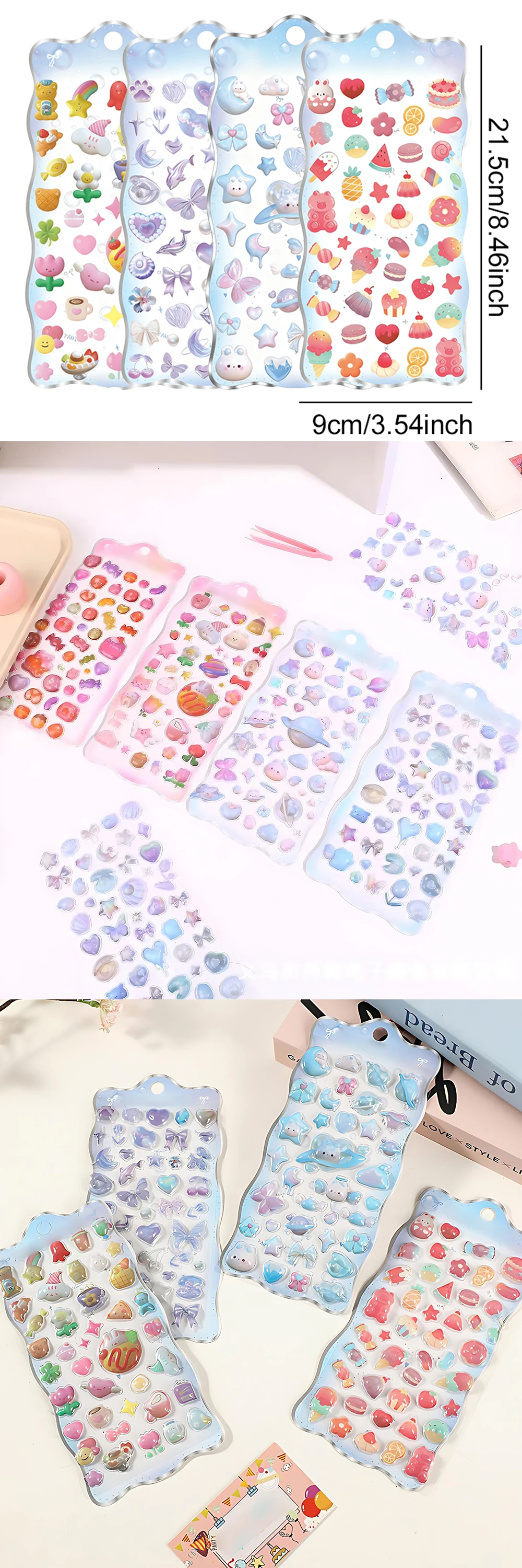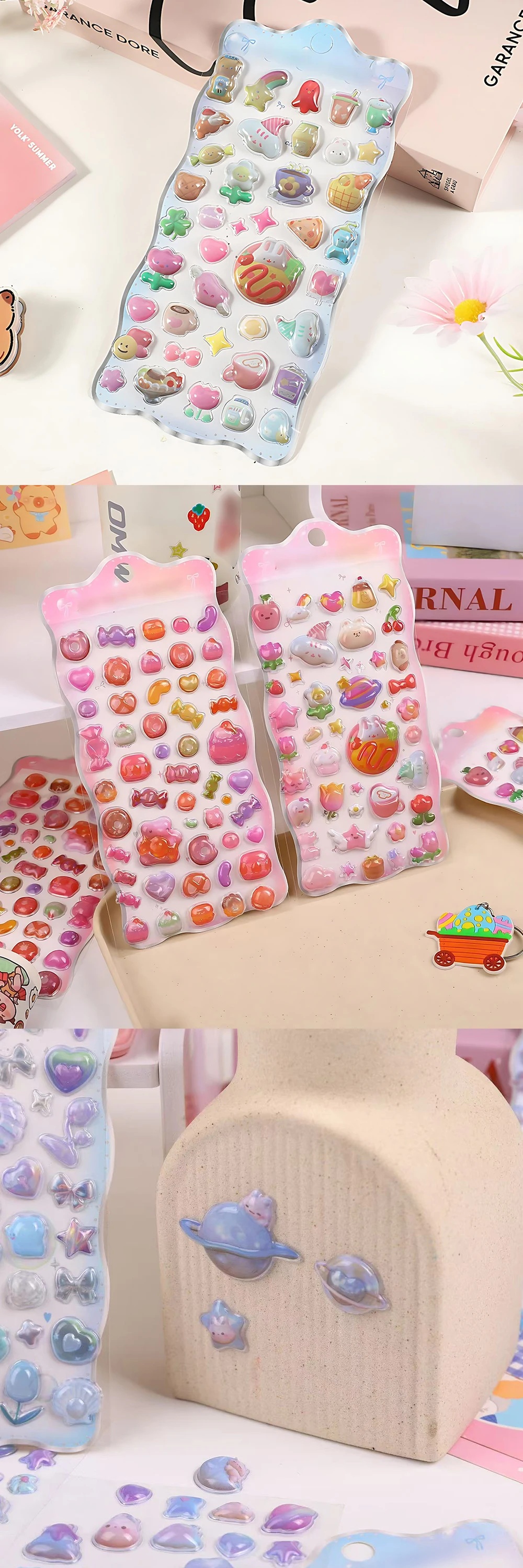 1 hoja creativa 3D pegatina en relieve de dibujos animados DIY funda de teléfono decoraciones de ordenador caramelo planeta pan océano parche de gelatina pegatinas ZYF