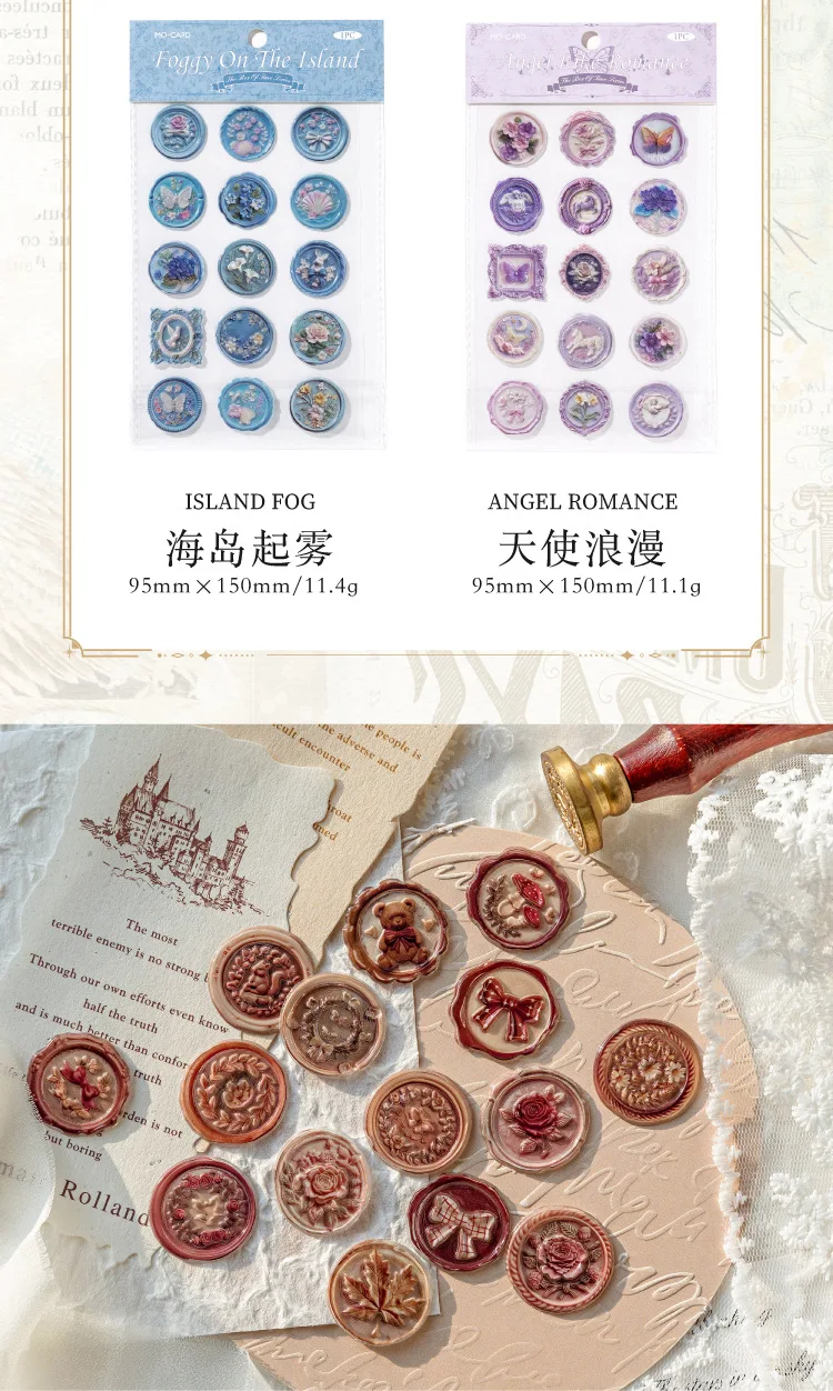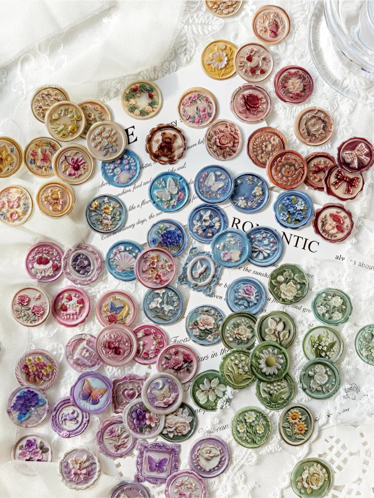 1 hoja de pegatinas de sello de cera, pegatinas autoadhesivas 3D, suministros de Collage DIY, decoración creativa, papelería, pegatinas estéticas de sellado