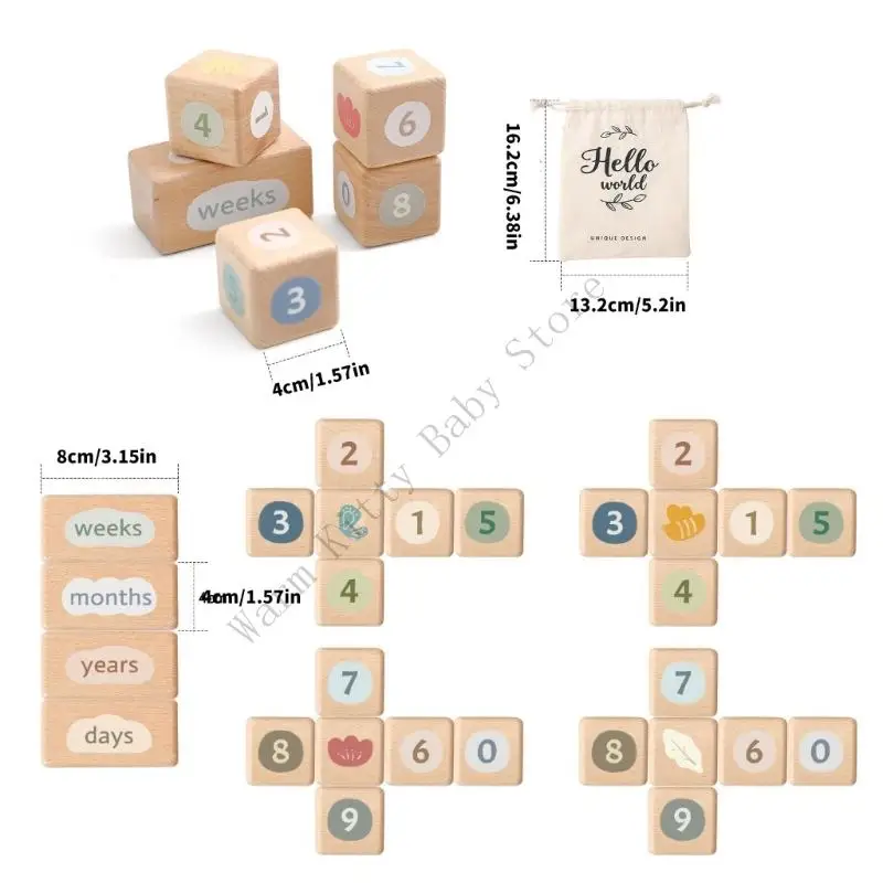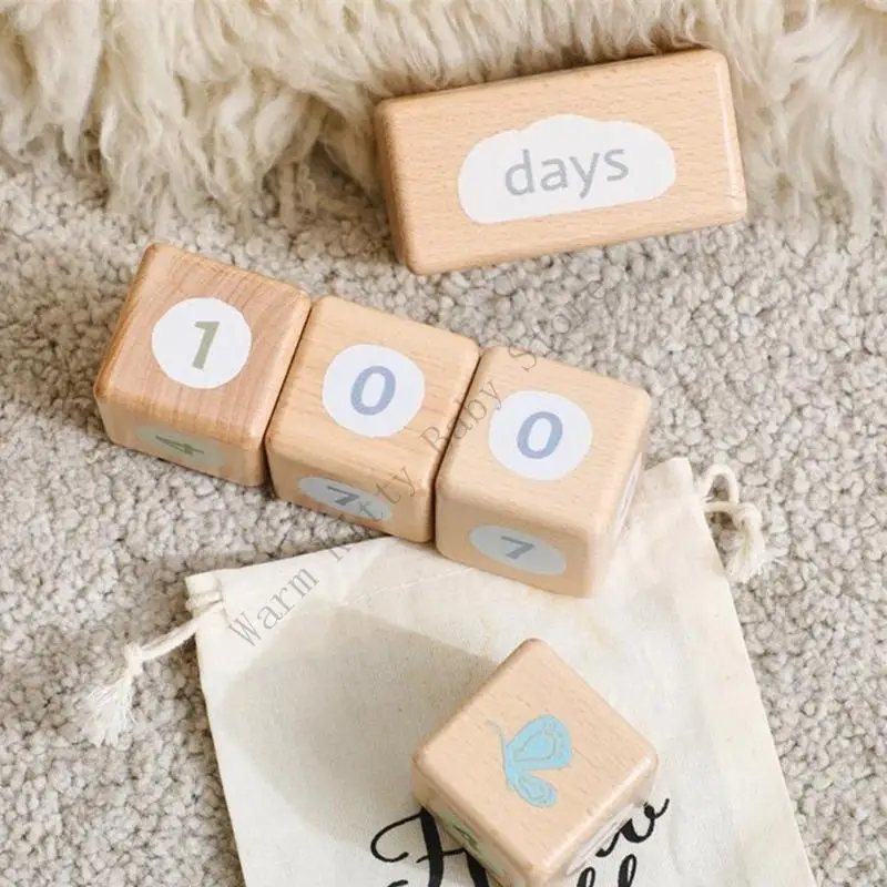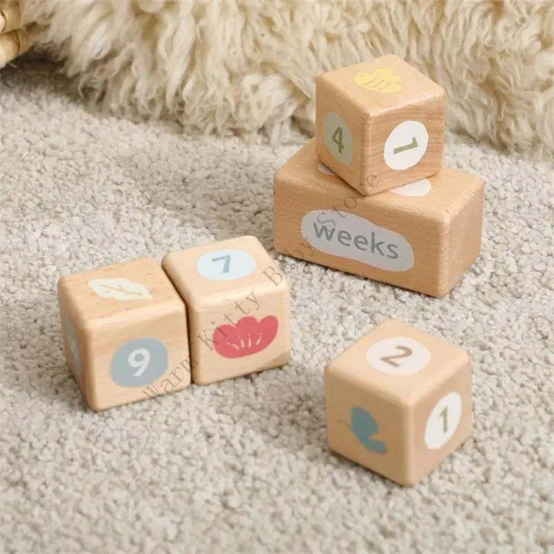 1 Juego de bloques de registro de crecimiento anual mensual de madera Natural para bebés, días de bebé, semanas de crecimiento, registros de memoria, accesorios de potografía