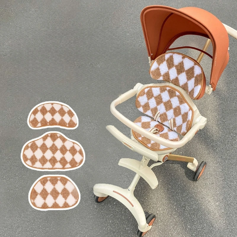 1 Juego de cojín de asiento de cochecito de bebé cálido de felpa de invierno, carro Universal para niños, soporte para cabeza y cuerpo, almohadillas de forro de asiento con cinturón fijable