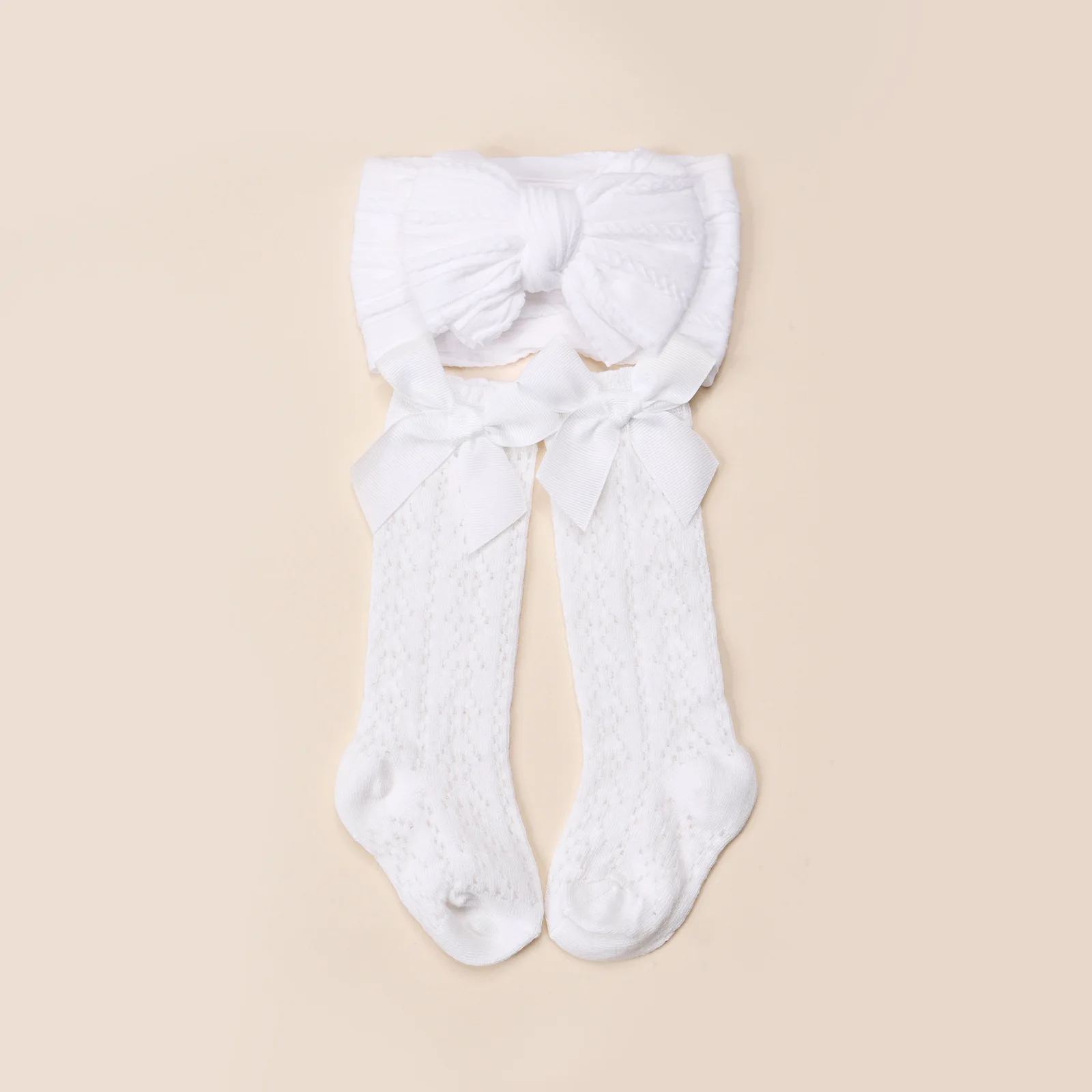 El paquete incluye: 1 diadema para bebé y 1 par de calcetines
