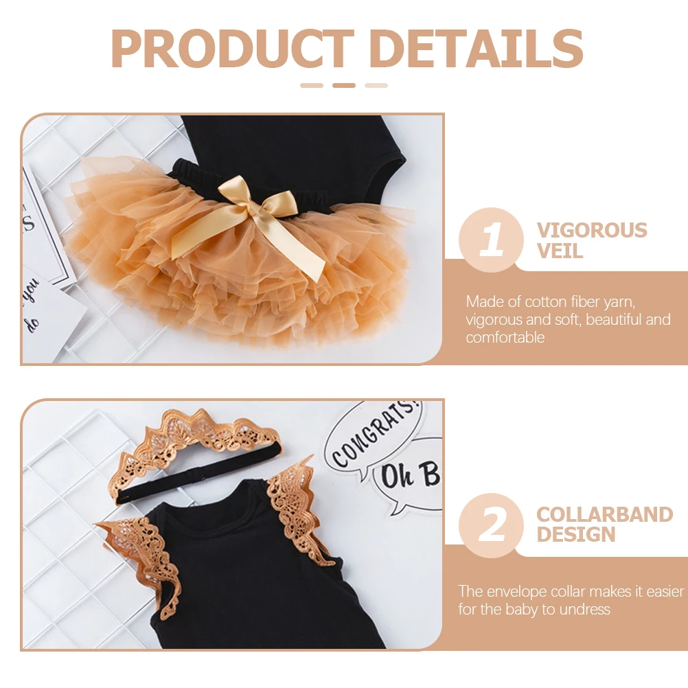 DescripciónPelele, falda y diadema de moda para niñas, bien hechos de material agradable para la piel, duradero y resistente para un uso duradero.SAdecuado para uso al aire libre, uso diario, sesión de fotos, fiesta de cumpleaños, vacaciones y otras ocasiones especiales.falda para niñas