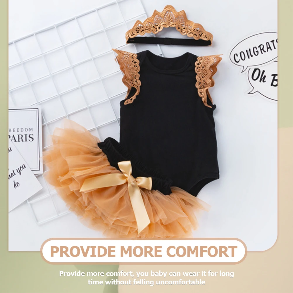 DescripciónPelele, falda y diadema de moda para niñas, bien hechos de material agradable para la piel, duradero y resistente para un uso duradero.SAdecuado para uso al aire libre, uso diario, sesión de fotos, fiesta de cumpleaños, vacaciones y otras ocasiones especiales.falda para niñas