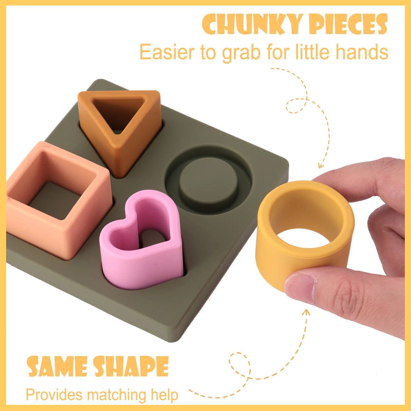 1 Juego de juguete mordedor para bebé sin BPA de Color, tablero de rompecabezas sensorial Montessori, juguete para masticar geométrico de silicona, juguete de aprendizaje de 0 a 3 años