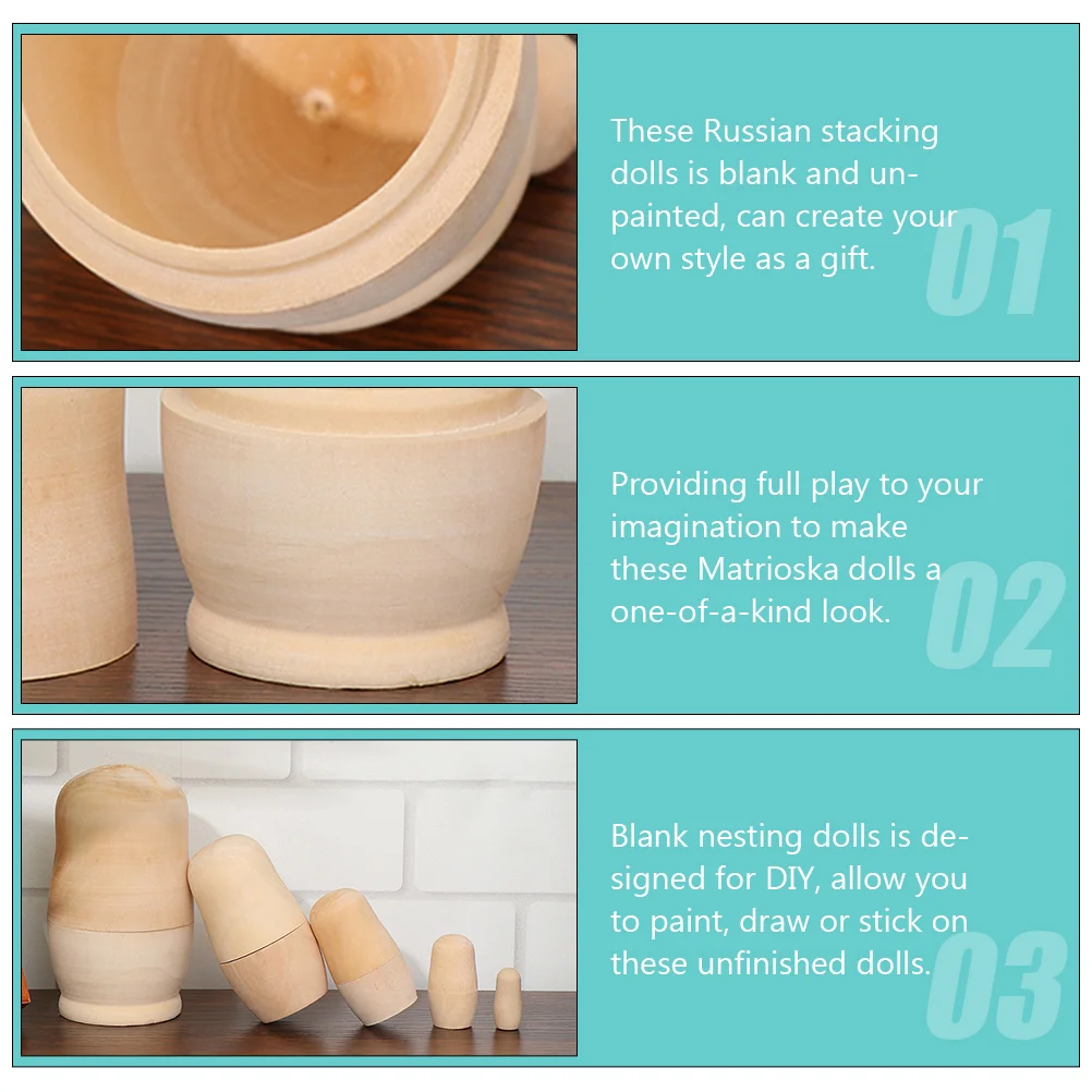 Comprar 1 Juego de juguetes apilables de madera sin pintar, bricolaje, en blanco, sin pintar, Matrioska, tilo, figuritas rusas hechas a mano