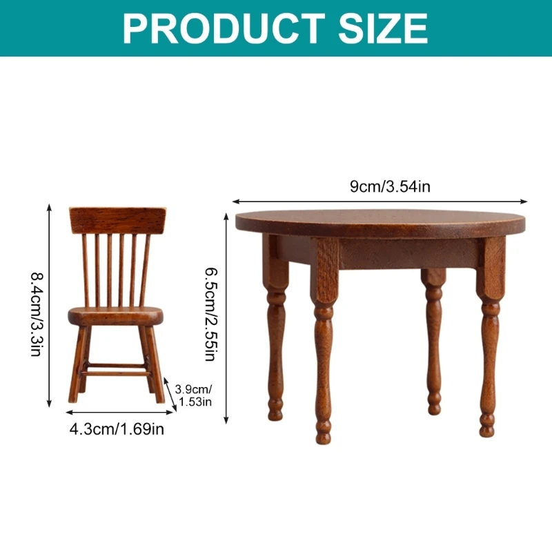 1 Juego de mesa de comedor en miniatura de madera para casa de muñecas a escala 1:12 con 2 sillas, Mini mesa de cocina, muebles modelo, decoración de escena de casa de muñecas
