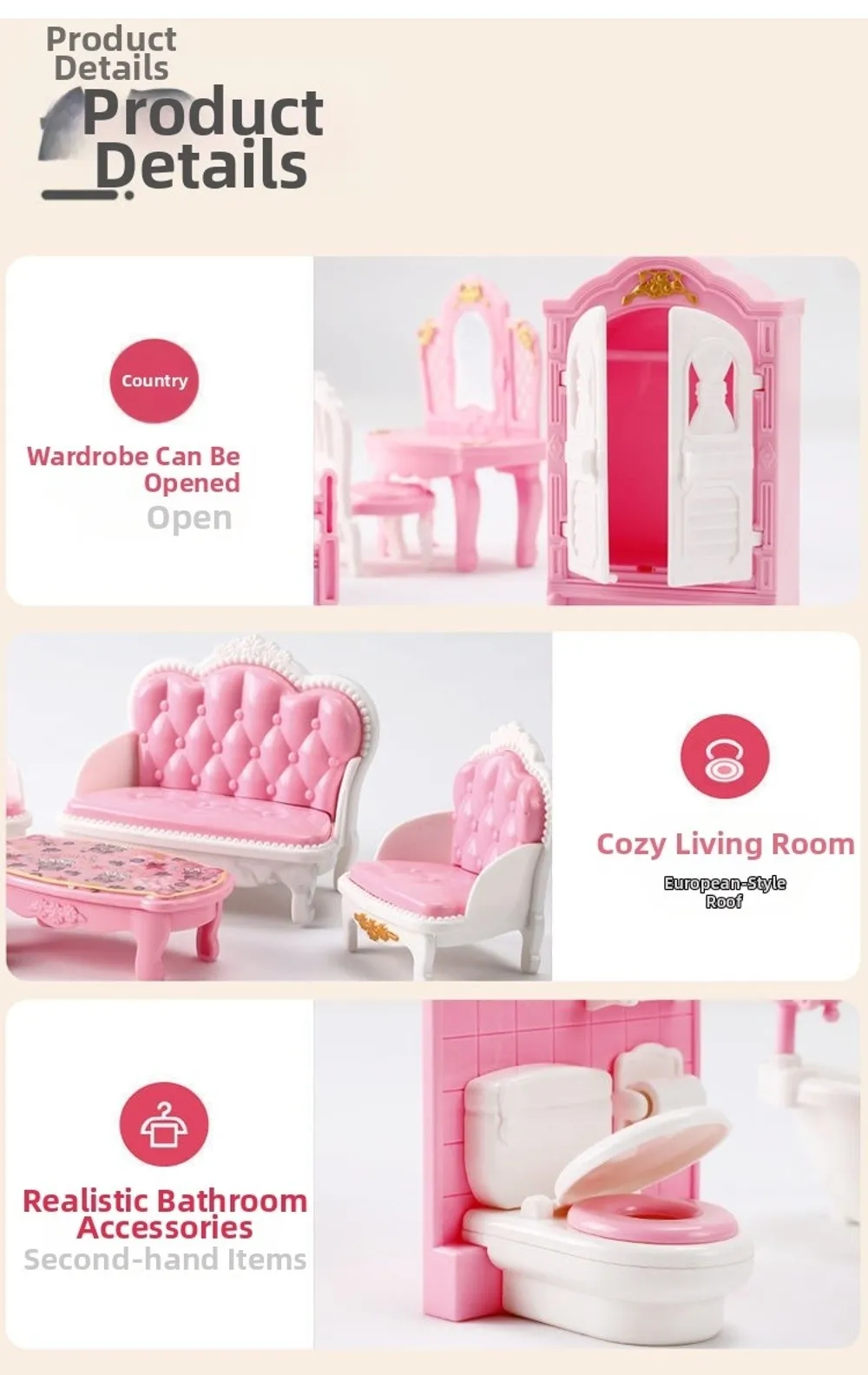 Brand new with high quality Material:Plastic Color: Pink+White Size:1:12 scale Target audience: Girls Featured feature: Simulation Ability cultivation: emotional and intellectual development, hands-on and brainpower, grasping, other ability cultivation, interactive toys, parent-child communication, interest cultivation Type: Simulation Room/Furniture 3C configuration category: Other toys under 14 years old Applicable age: Adolescents (7-14 years old) Size:As pictures shown Furniture Container Display Size:19*12*3cm(7.48*4.72*1.18in) Quantity:1Set Style: Bedroom set (4-piece set), two colors randomly selected; Living room set (7-piece set), as shown in the picture; Kitchen set (10 pieces set), as shown in the picture; Bathroom set (11 pieces set), as shown in the picture Package include: 1Set Miniature Dollhouse Furniture Accessoies Note: 1.Please allow 1-3mm differs due to manual measurement. 3.Due to the different display and different light, the picture may not show the actual color of the item. Thanks for your understanding.