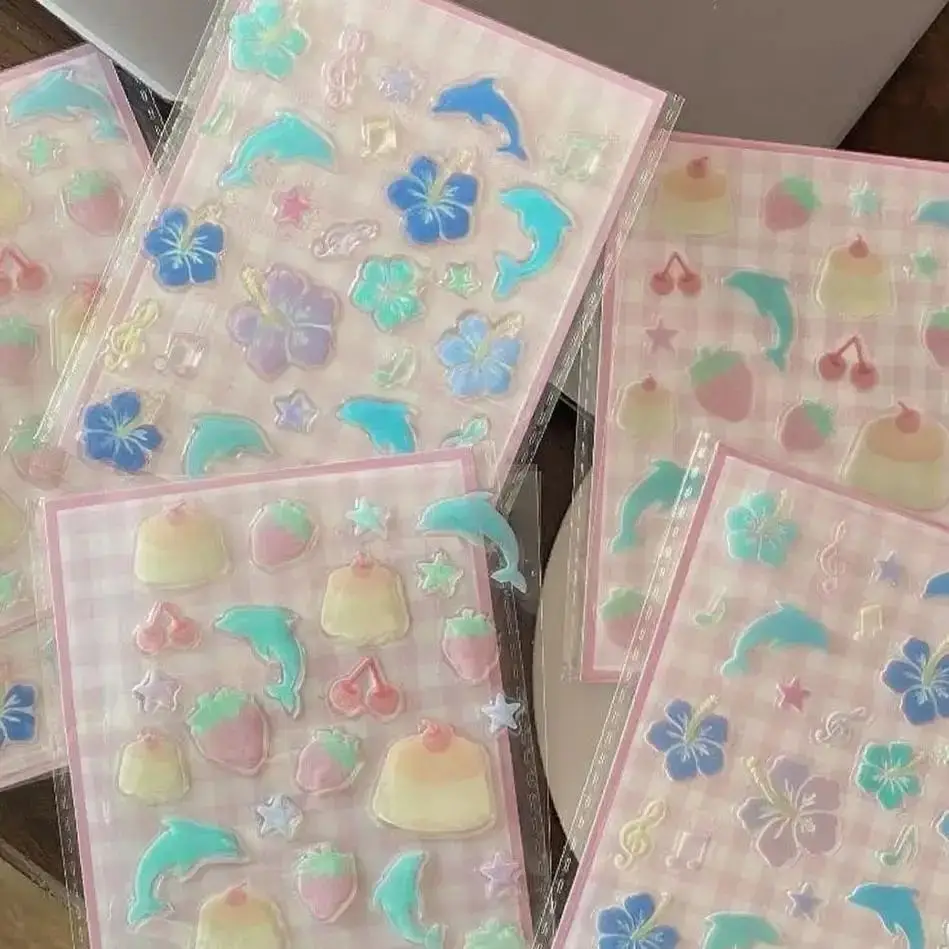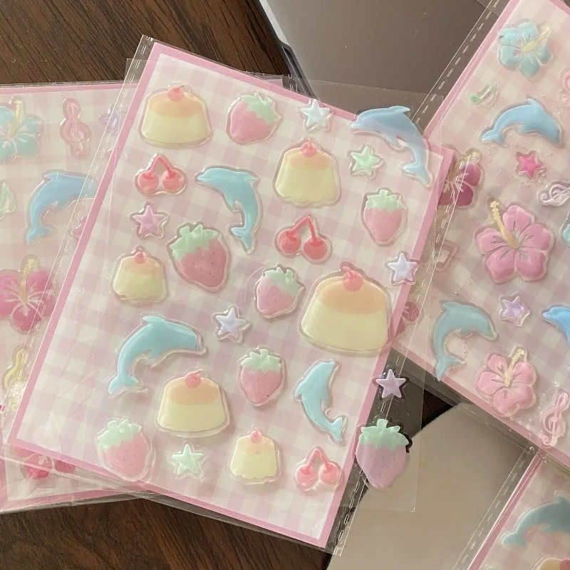 1 Juego de pegatinas tridimensionales bonitas, pegatinas decorativas divertidas para planificador de gelatina, pegatinas para teléfono móvil y ordenador