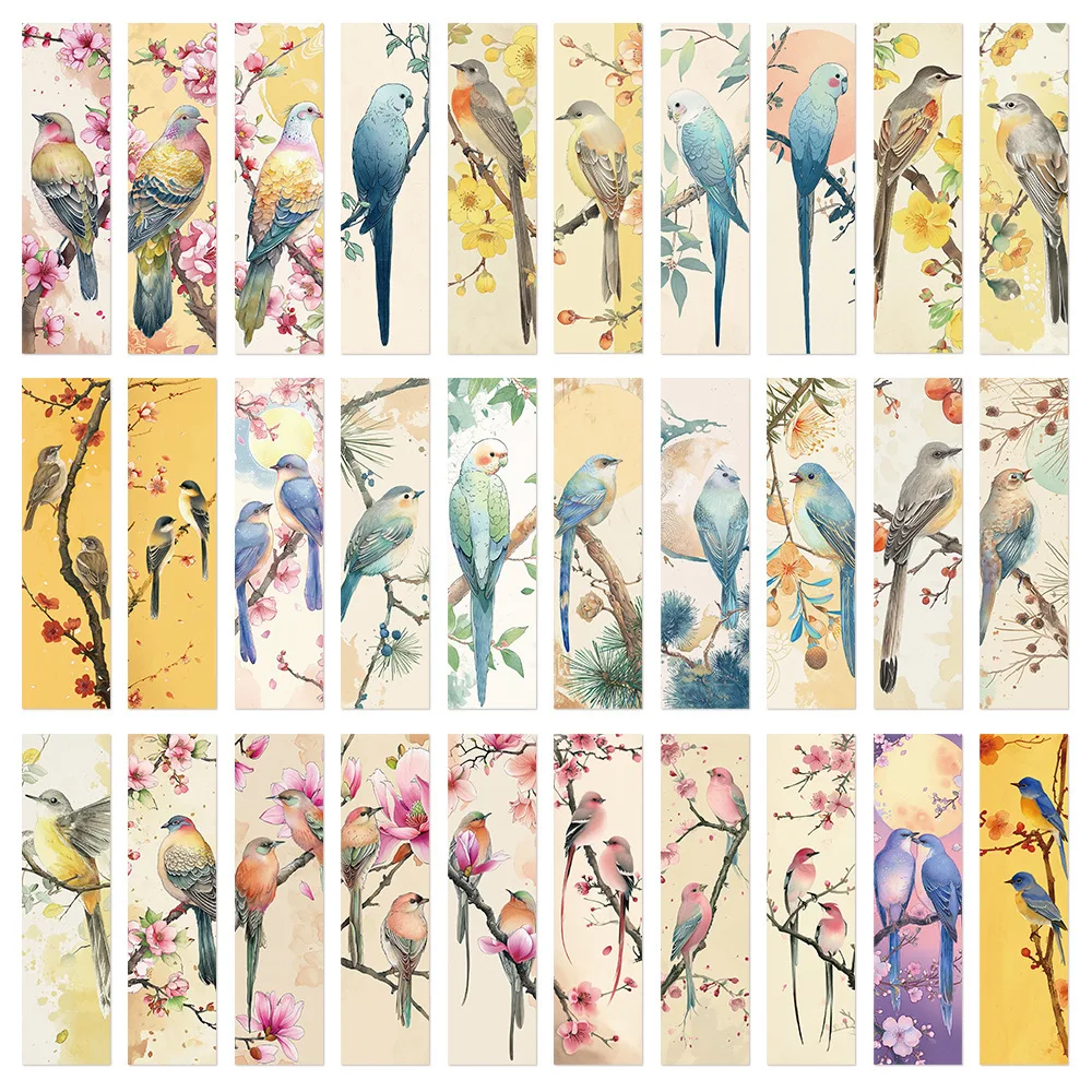 1 paquete/30 Uds. Marcapáginas de pájaro bonito Urraca gorrión decoración de dibujos animados libro de lectura página libro de anotaciones estudiantes usan tarjetas de papel