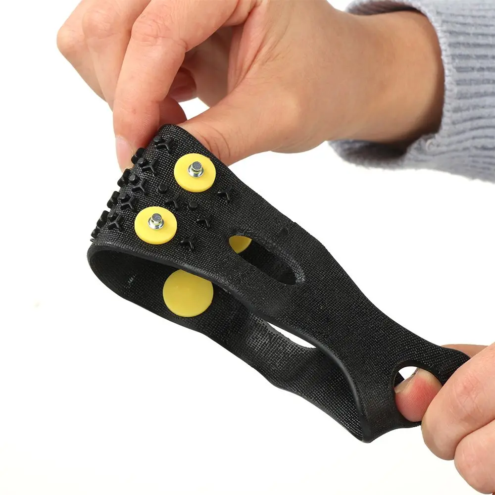 100% Brand New and High quality. Type:Anti Slip Ice Gripper Material:PE Color:Classic Black Yellow 5-Studs:Size:11cmx5cm Quantity:1 Pair Features:Anti Slip,Portable,Lightweight,Elastic,Wearable,Durable Features: Durable overshoes with good elasticity. Ground-gripping steel studs,easily fitted over existing footwear with no buckles or straps. The material is flexible. Carefully fasten overshoes to your shoes. The overshoes could walk on flat and thin icy or snow ground. Wipe the overshoes clean with a dry cloth after using. Stores the overshoes in a cool and dry place, away form direct sunshine or fire. Package Included:1 Pair Anti Slip Ice Gripper Notes: 1.Please allow 1-3mm differs due to manual measurement. 2.Due to the different display and different light, the picture may not show the actual color of the item. Thanks for your understanding.