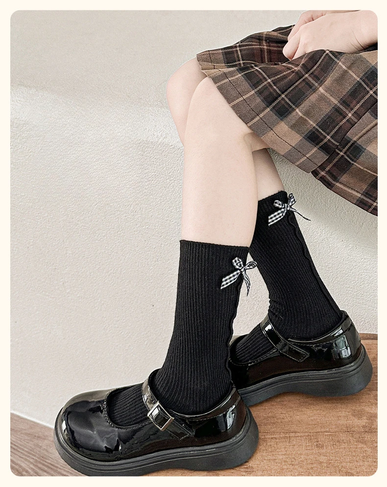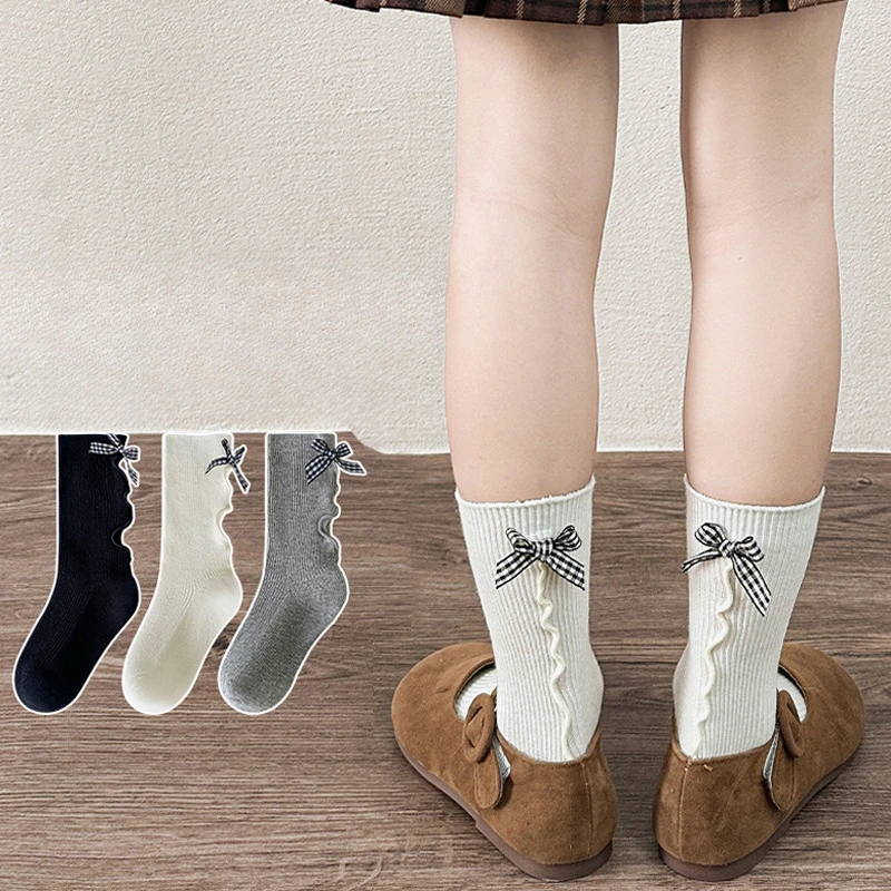 Comprar 1 par de calcetines de algodón suave para niñas, moda coreana, simplicidad, calcetín hasta la pantorrilla con lazo para niños, calcetín escolar fino para primavera y verano