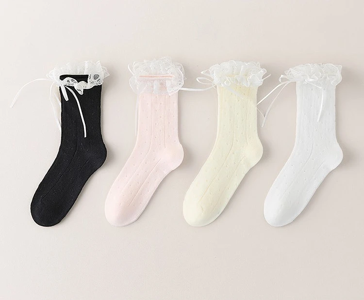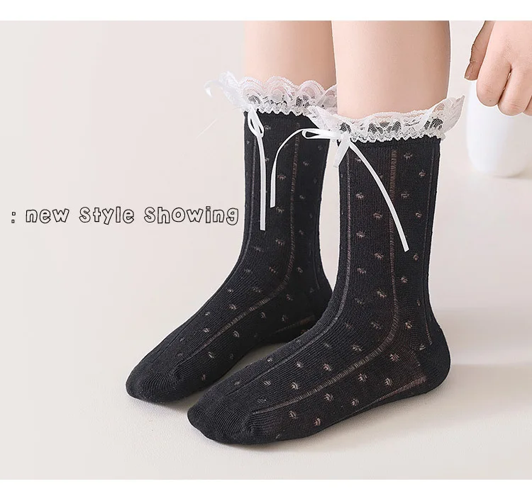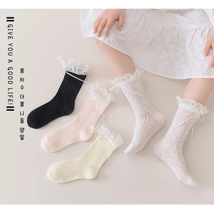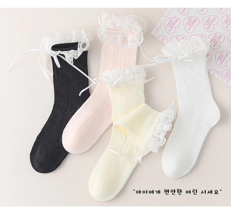 1 par de calcetines coreanos dulces con lazo de encaje para niños y niñas, calcetines de pantorrilla transpirables con volantes de princesa, calcetines finos de algodón suave para la escuela