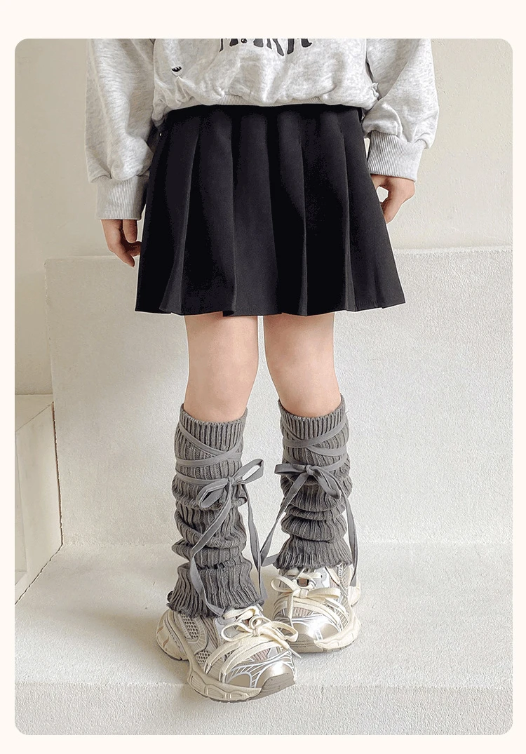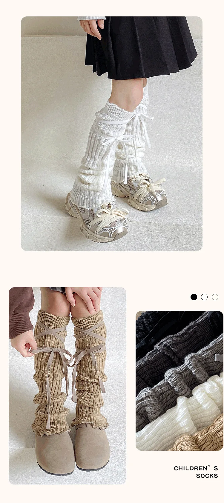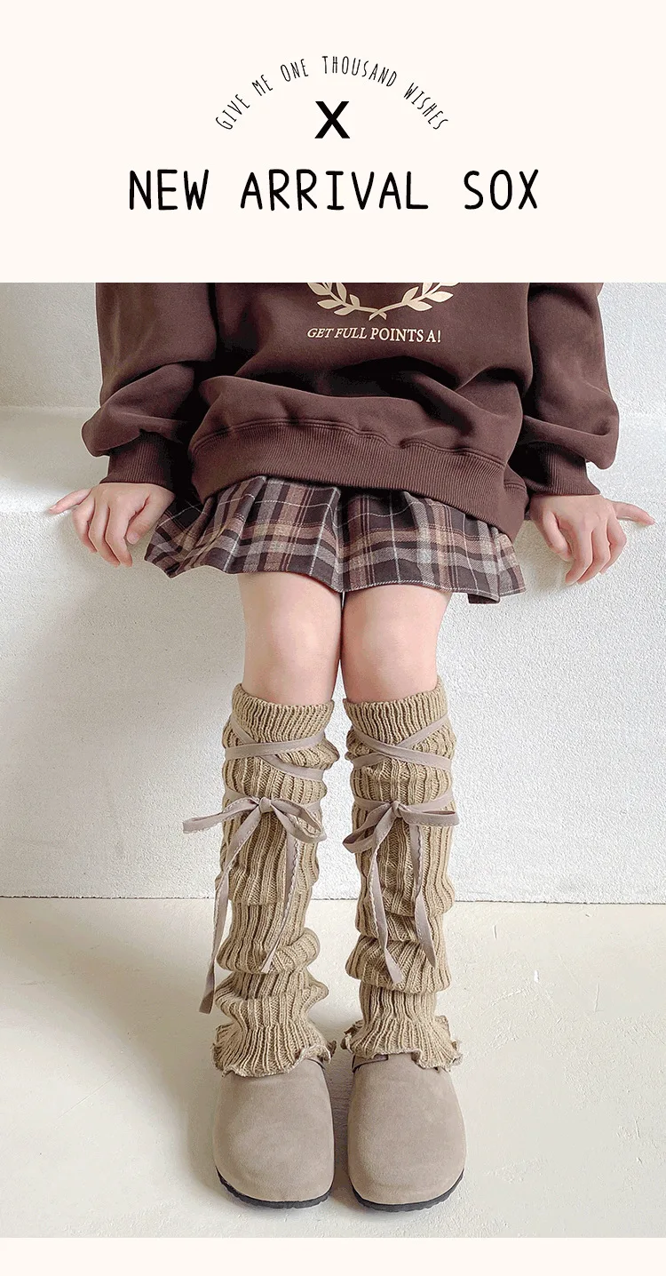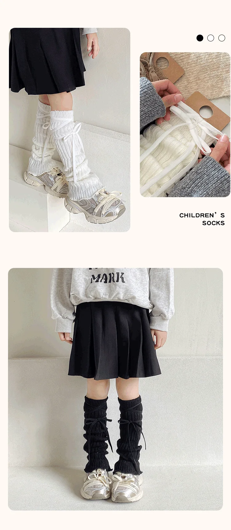 1 par de calcetines escolares de moda para niños y niñas, calentadores de piernas con correa cruzada y lazo de diseño creativo, calcetín cálido para Otoño e Invierno