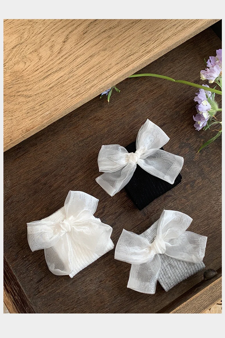 1 par de calcetines finos transpirables de verano para niños y niñas, dulce lazo de princesa, moda coreana, calcetín escolar de algodón suave para niños