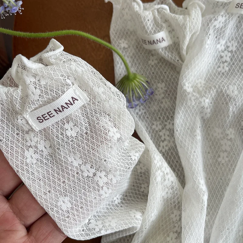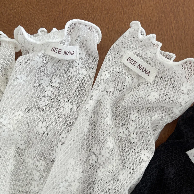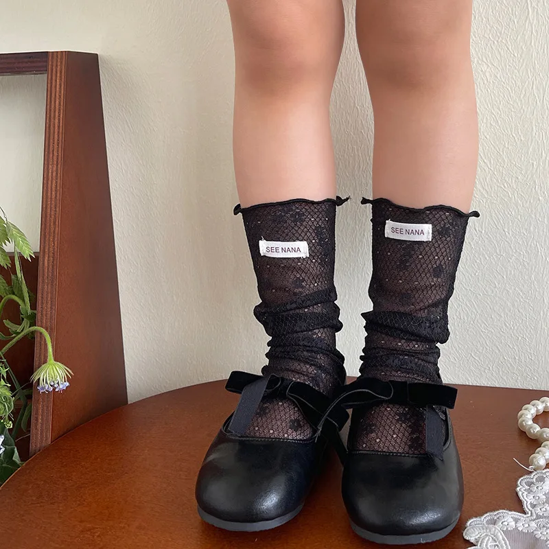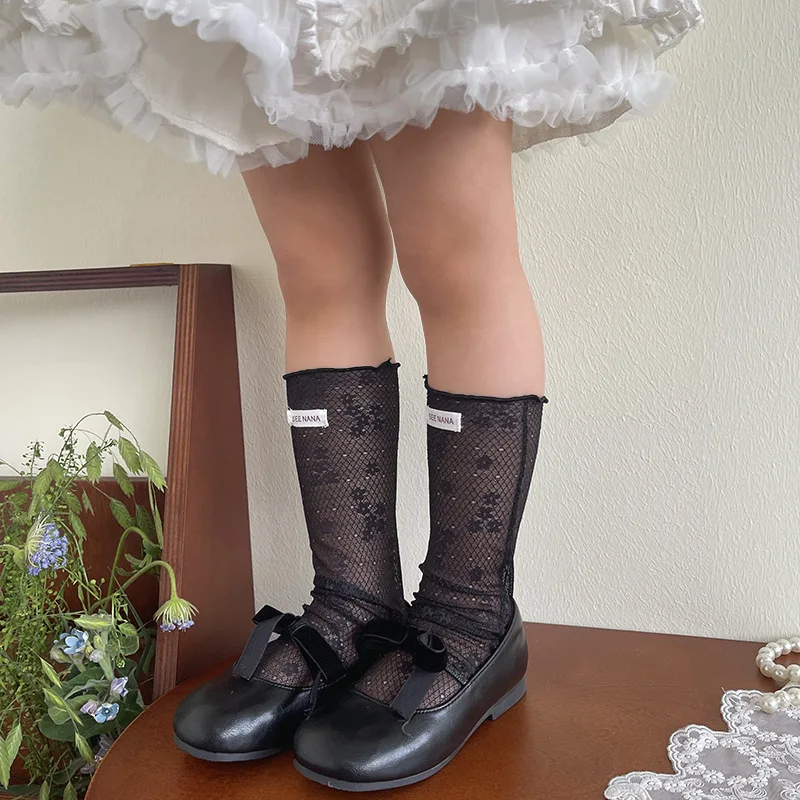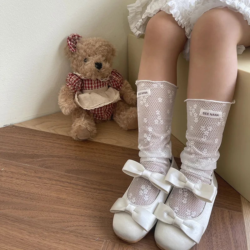 1 par de calcetines finos de verano para niños y niñas, calcetines de pelo suelto con bordado Floral de belleza, calcetines escolares suaves y transpirables a la moda para niños