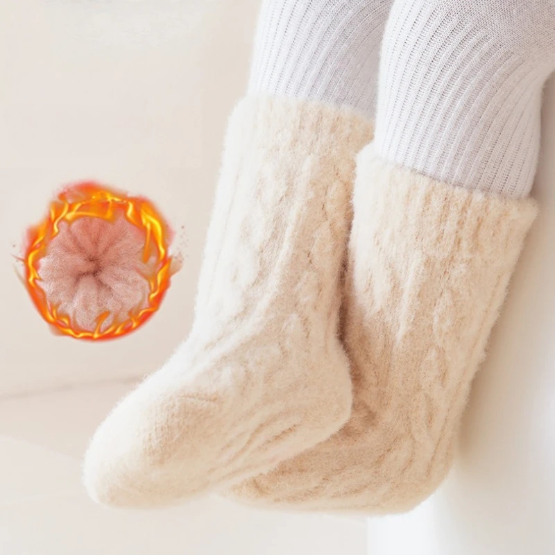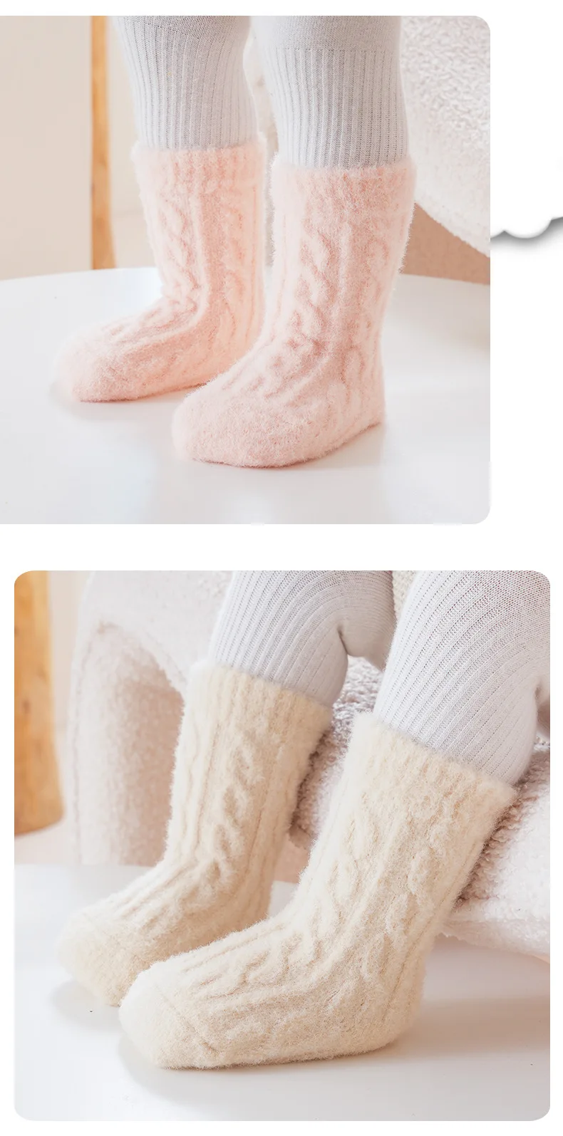 1 par de calcetines de invierno para bebé, calcetines gruesos de terciopelo con forro polar para niños pequeños, calcetines suaves y cálidos para niños (0-4 años)